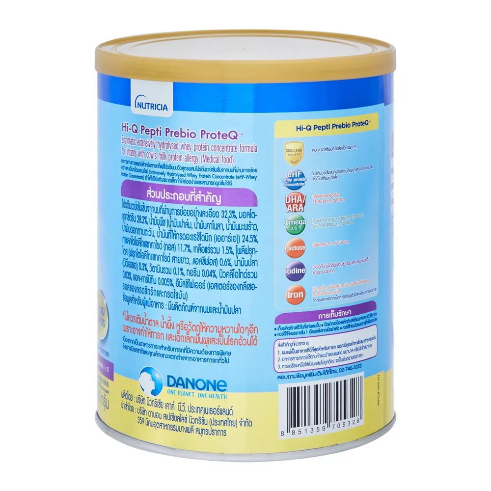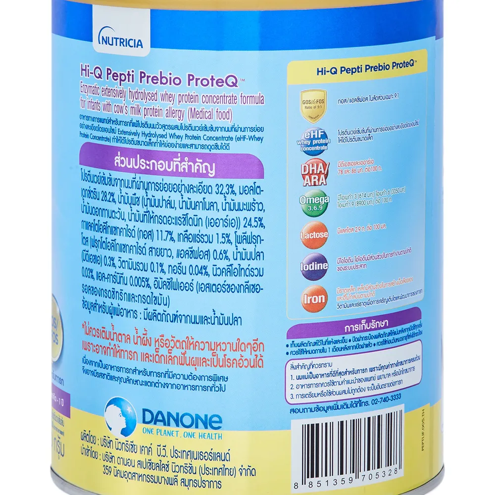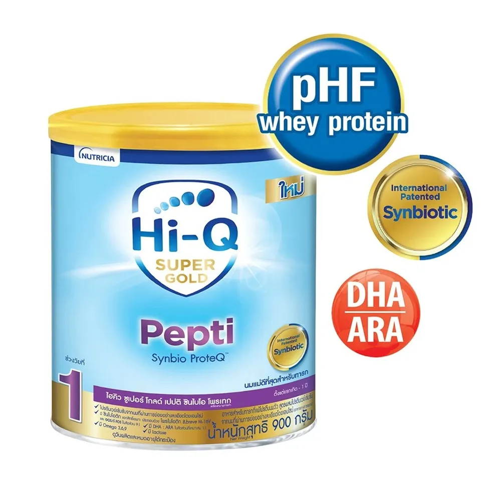 ไฮคิว เปปติ ซินไบโอโพรเทค อาหารทางการแพทย์สำหรับทารกที่แพ้โปรตีนนมวัวสูตรผสมโปรตีนเวย์เข้มข้นจากนมที่ผ่านการย่อยอย่างละเอียดโดยเอนไซม์ทำให้ได้โปรตีนขนาดเล็ก ทำให้ย่อยง่ายและสามารถดูดซึมได้ดี ผสม patented GOS/lcFOS ratio of 9:1 combination ซึ่งเป็นเอกสิทธิ์เฉพาะพร้อมสารอาหารที่จำเป็นต่อการเจริญเติบโตและพัฒนาการของทารก<br />
