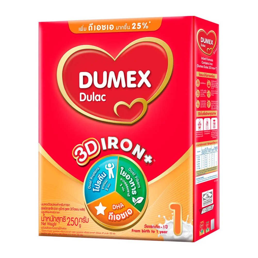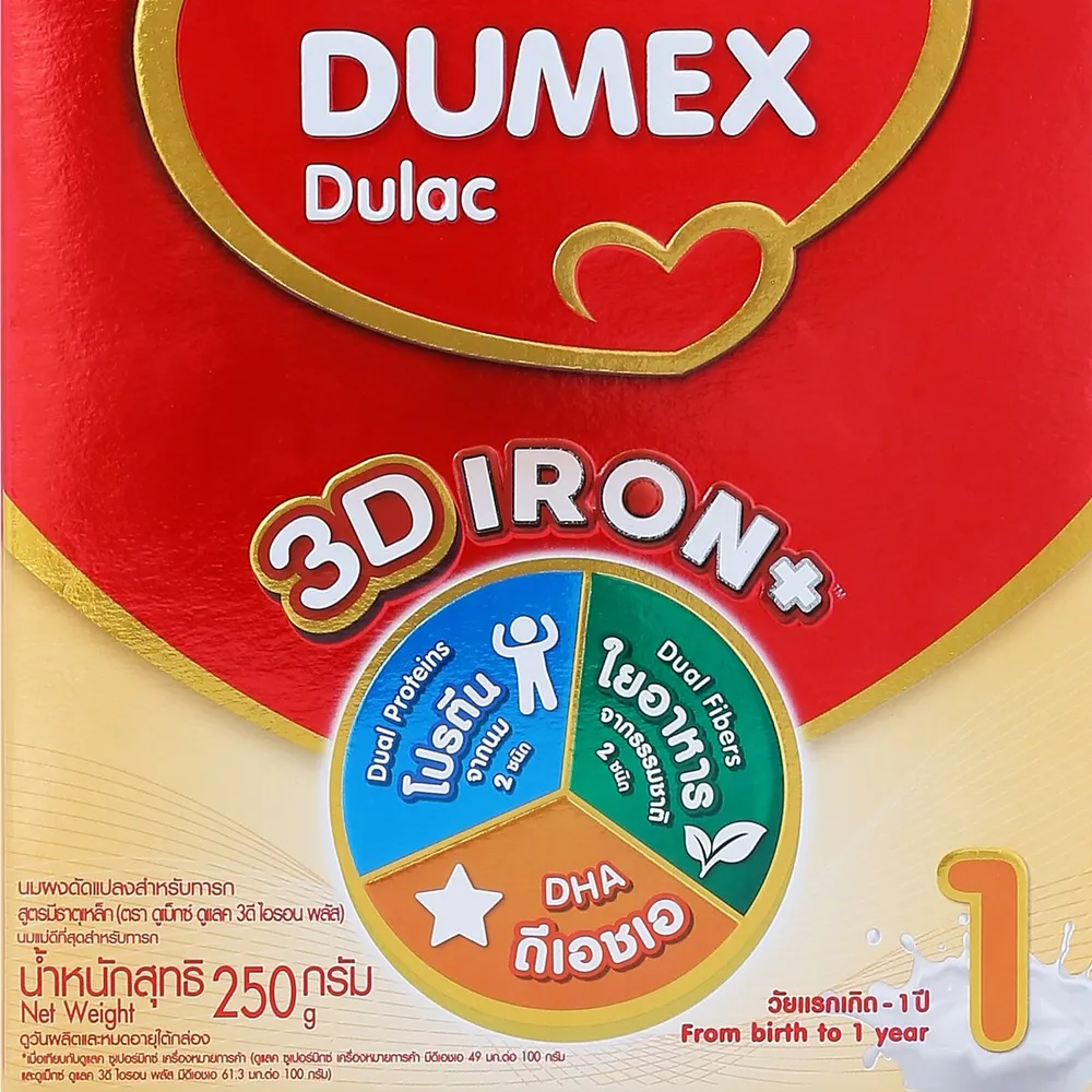 ดูเม็กซ์ ดูแลค ไอรอน พลัส นมผงดัดแปลงสำหรับทารก สูตรมีธาตุเหล็ก สูตร 1 ขนาด 250 ก.