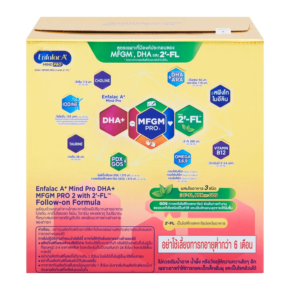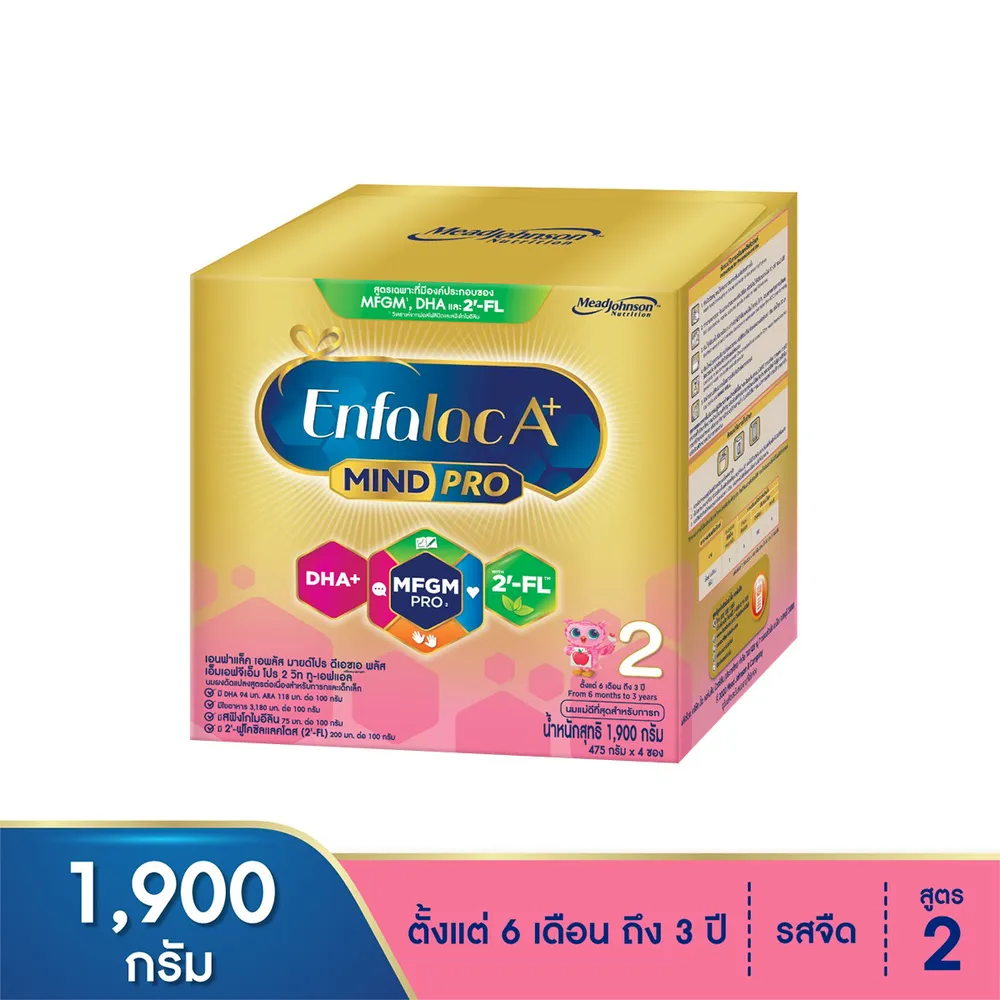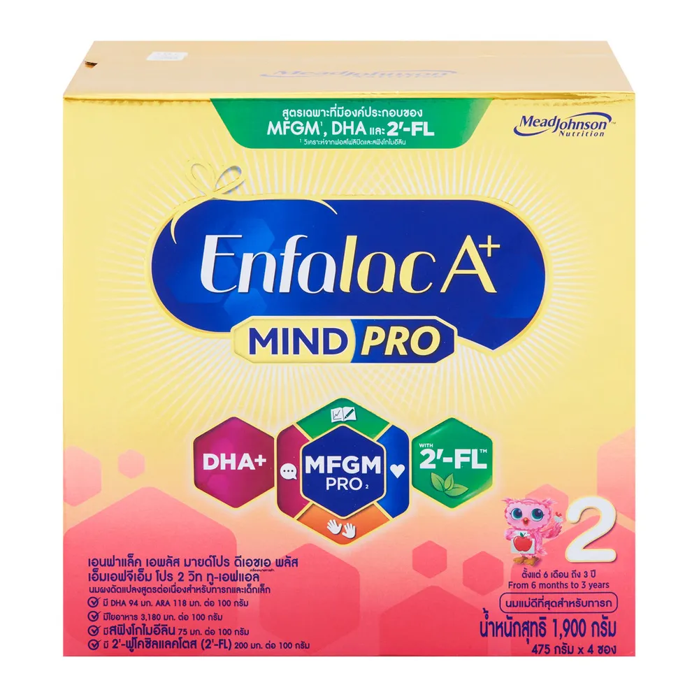 เอนฟาแล็ค เอพลัส มายด์โปร DHA+ MFGM โปร 2 วิท 2'-FL นมผงดัดแปลงนมผงดัดแปลงสูตรต่อเนื่อง 1900 ก.