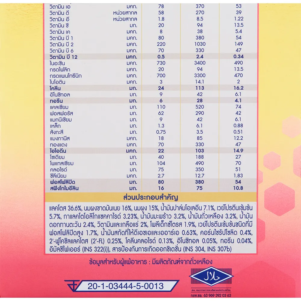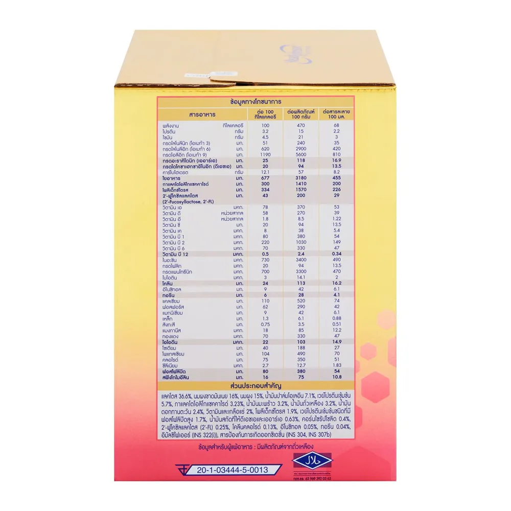 - มี 2&#39;-ฟูโคซิลแลคโตส (2&#39;-FL) เป็นโอลิโกแซคคาไรด์และใยอาหาร<br />