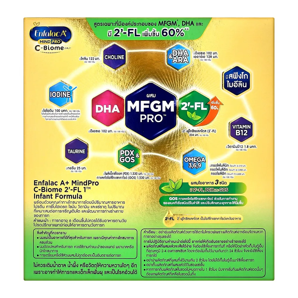 เอนฟาแล็ค เอพลัส ซีไบโอม นมผงดัดแปลงสำหรับทารก สูตรเฉพาะที่มีองค์ประกอบของ MFGM*, DHA และ 2&#39;-FL พร้อมด้วยคุณค่าทางโภชนาการ โดยมีปริมาณสารอาหาร โปรตีน คาร์โบไฮเดรต ไขมัน วิตามิน และแร่ธาตุ ในปริมาณที่เหมาะสมต่อการเจริญเติบโต และพัฒนาการทางร่างกายของทารก<br />