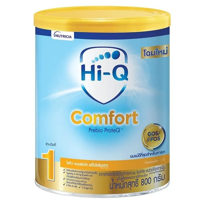 - นิวทริเซีย ไฮคิว คอมฟอร์ท พรีไบโอโพรเทก อาหารสำหรับทารกที่มีปัญหาการแหวะนม ร้องโคลิก และช่วยให้อุจจาระนิ่ม<br />