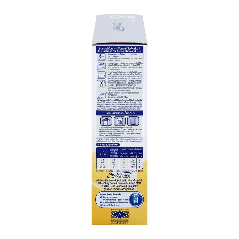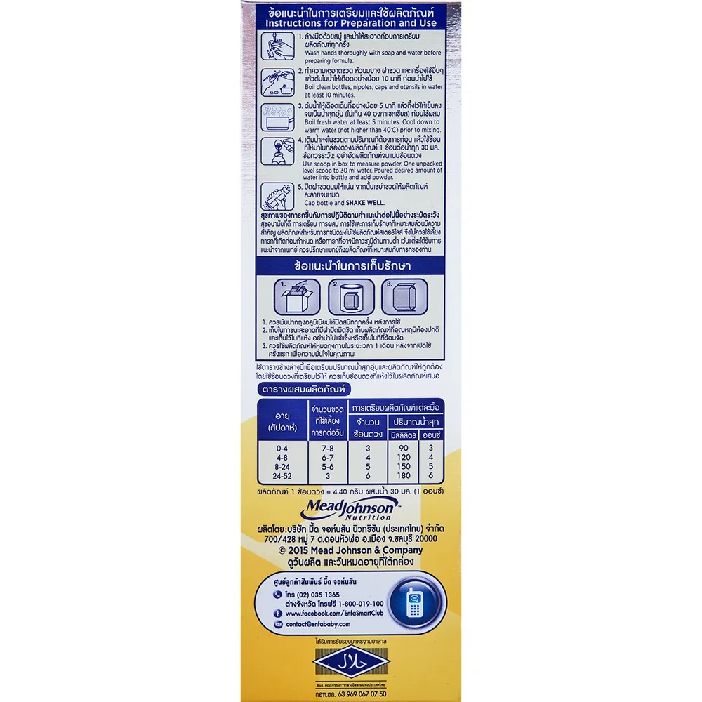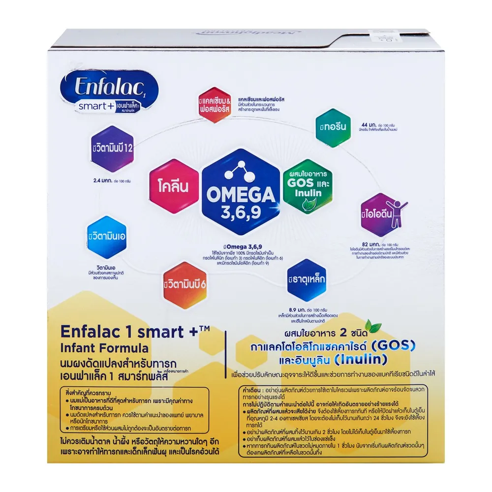 <p>เอนฟาแล็ค สมาร์ทพลัส นมผงดัดแปลงสำหรับทารก สูตร 1<br /> <br /> เสริมสร้างพัฒนาการให้กับลูกรักด้วย เอนฟาแล็ค สมาร์ทพลัส นมผงดัดแปลงสำหรับทารก นมผงที่ผลิตขึ้นด้วยความพิถีพิถัน อุดมไปด้วยสารอาหารที่มีประโยชน์ ช่วยเสริมสร้างให้ลูกรักแข็งแรง พร้อมเรียนรู้ในทุกๆ ช่วงวัย และนมแม่เป็นสิ่งดีที่สุดสำหรับทารก<br /> <br /> - เอนฟาแล็ค สมาร์ทพลัส สำหรับเด็กแรกเกิดถึง 1 ปี<br /> - มีโคลีน<br /> - มีกรดไขมันจำเป็น คือ โอเมก้า 3 6 9<br /> - มีวิตามินบี 12<br /> - มีแคลเซียม ธาตุเหล็ก และทอรีน<br /> - ผสมใยอาหารสองชนิด คือกาแลคโตโอลิโกแซคคาไรด์ (GOS) และอินนูลิน (Inulin)<br /> - นมแม่ดีที่สุดสำหรับทารก<br /> <br /> <strong>ข้อควรระวังจากการเตรียมหรือการใช้อาหารสำหรับทารก</strong><br /> 1. ผลิตภัณฑ์ชนิดนี้ควรเตรียม เก็บรักษา และใช้อย่างระมัดระวังเพื่อความปลอดภัยของทารก<br /> 2. ขวดนมและจุกนมต้องล้างทำความสะอาดและต้มในน้ำเดือดอย่างน้อย 5 นาที หรือนึ่งในเครื่องนึ่งไอน้ำเดือดนานตามข้อกำหนดของแต่ละเครื่องก่อนใช้ทุกครั้ง<br /> 3. น้ำที่ใช้ชงนมต้องต้มให้สุก ทิ้งไว้ให้อุ่นหรือเย็นก่อนนำไปชงนม<br /> 4. ควรเตรียมนมให้พอดีกับความต้องการของทารกในแต่ละมื้อ ไม่ควรนำนมที่เหลือในแต่ละมื้อมาให้ทารกกินอีก<br /> <br /> <span style="color: #ff0000;">สินค้าที่ได้รับอาจมีการปรับเปลี่ยนแพ็คเกจและปริมาณจากผู้ผลิต ขออนุญาตสงวนสิทธิ์ในการเปลี่ยนแปลงดังกล่าว โดยไม่แจ้งให้ทราบล่วงหน้า</span><br /> <br /> *ภาพประกอบใช้เพื่อการโฆษณาเท่านั้น</p>