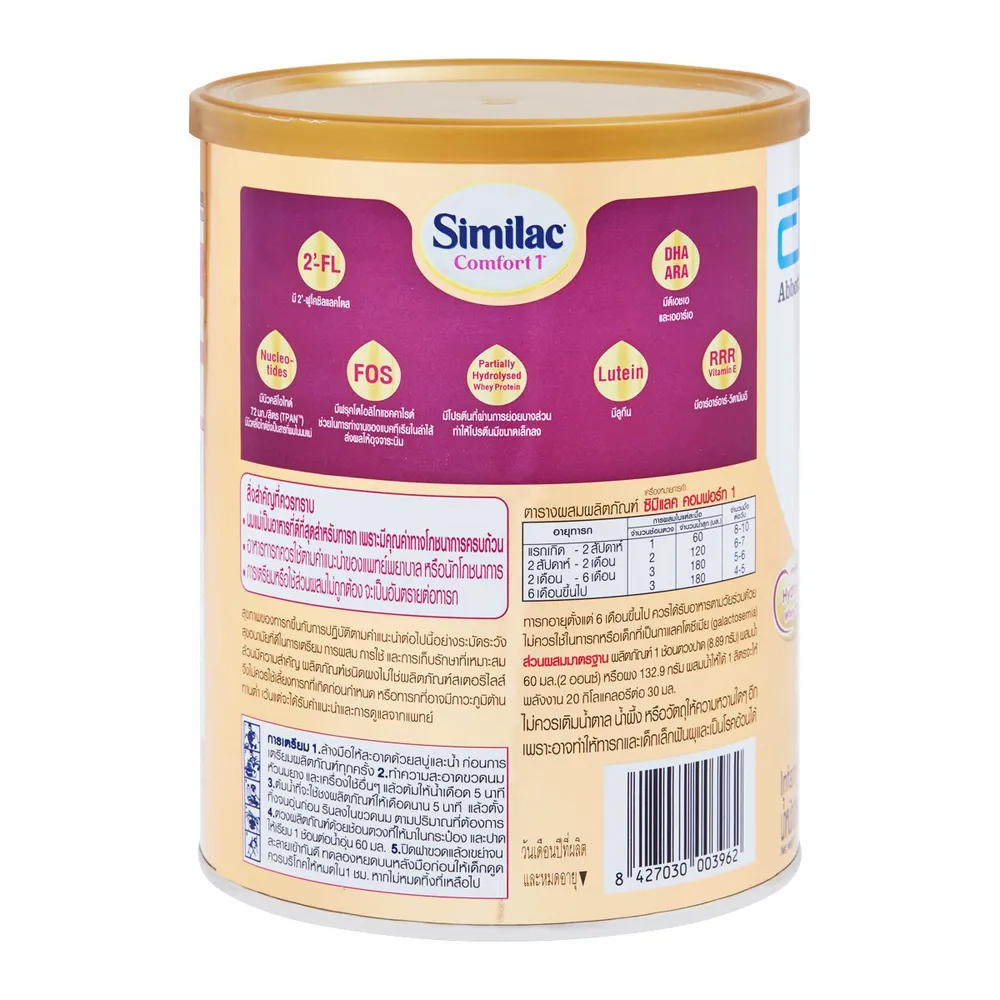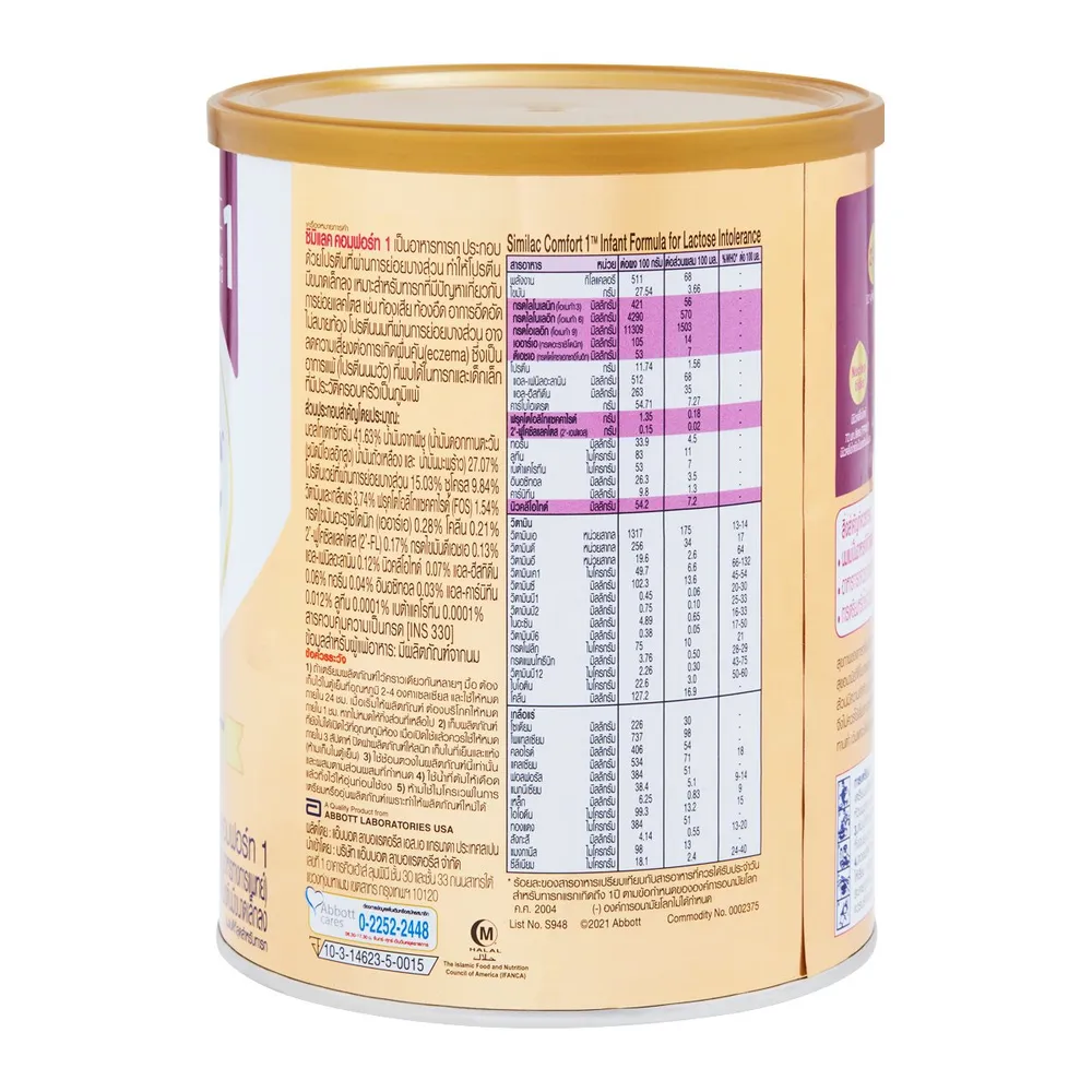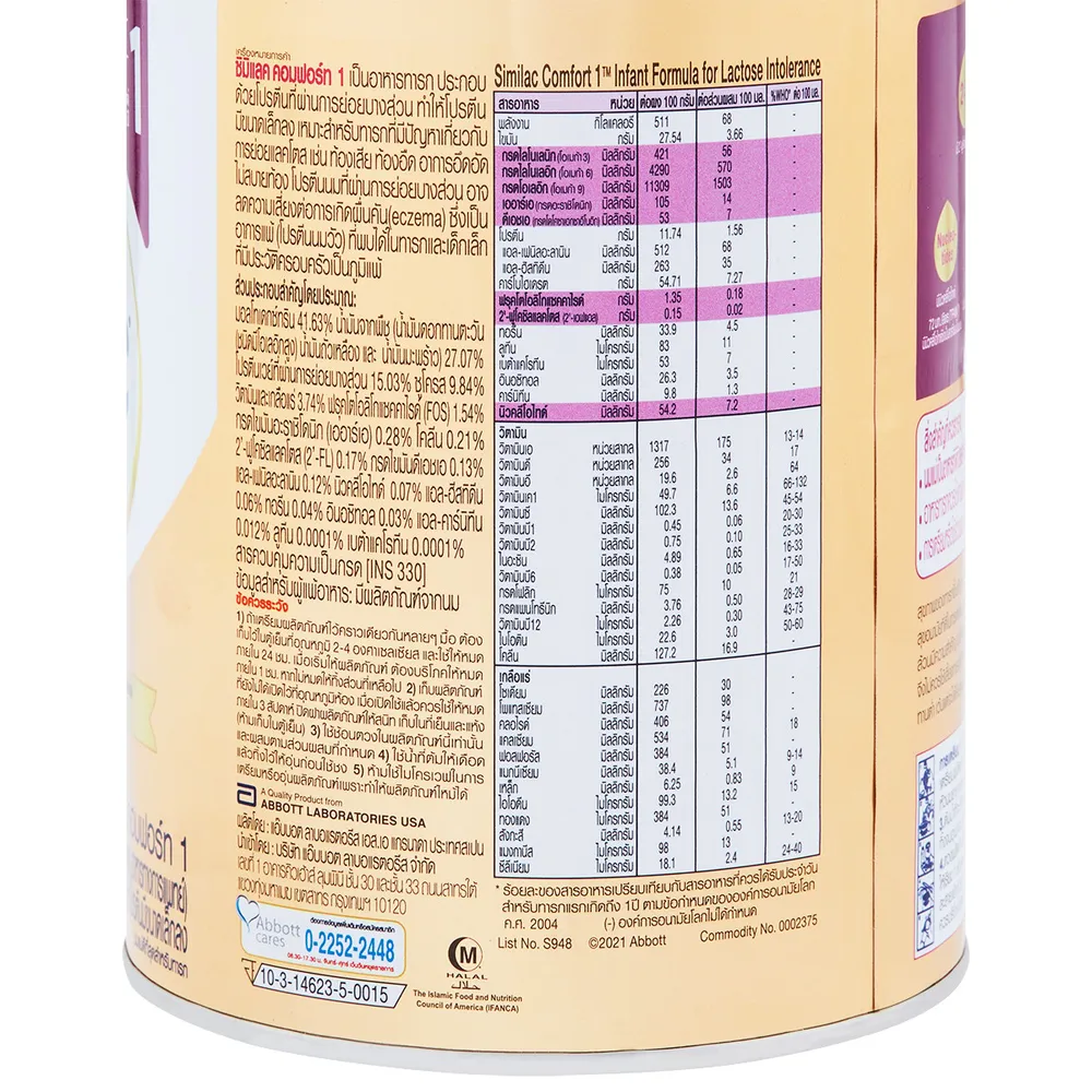 ซิมิแลค คอมฟอร์ท 1 อาหารทางการแพทย์ สำหรับทารกแรกเกิด-1 ปี มี 2&#39;-FL นิวคลีโอไทด์ วิตามินดี อี ลูทีน และโปรตีนนมที่ผ่านการย่อยบางส่วน เหมาะสำหรับทารกที่มีปัญหาเกี่ยวกับการย่อยแลคโตส เช่น อาการท้องเสีย ท้องอืด อาการอึดอัดไม่สบายท้อง<br />