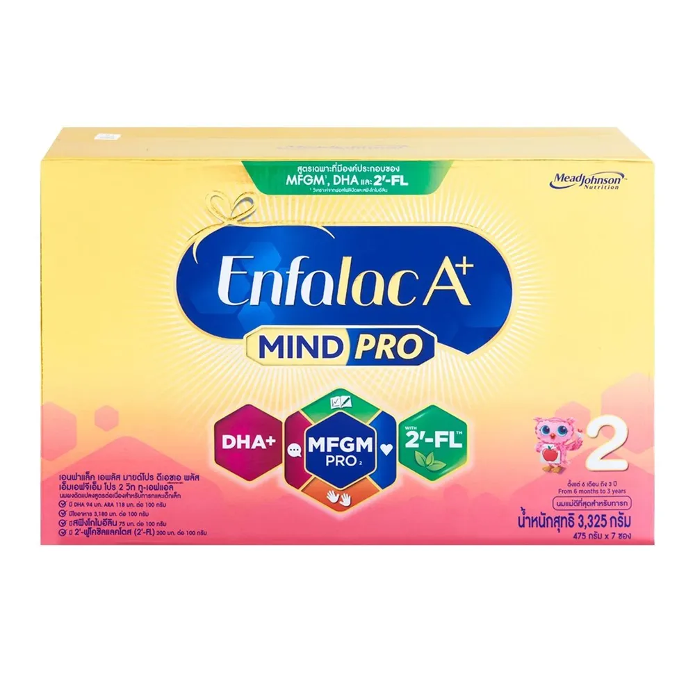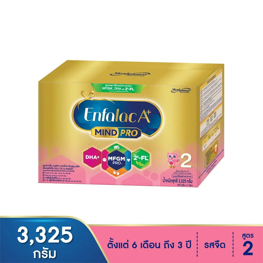 <p>เอนฟาแล็ค เอพลัส มายด์โปร DHA+ MFGM โปร 2 วิท ทู-เอฟแอล นมผงดัดแปลงสูตรต่อเนื่อง<br />