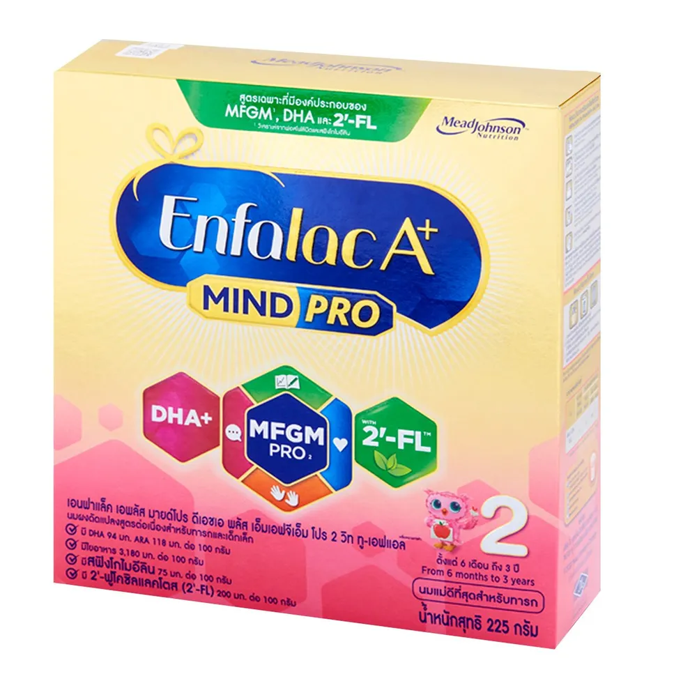 เอนฟาแล็ค เอพลัส มายด์โปร ดีเอชเอ พลัส MFGM โปร 2 วิท ทู-เอฟแอล นมผงดัดแปลงสำหรับทารกและเด็กเล็ก 225 ก.