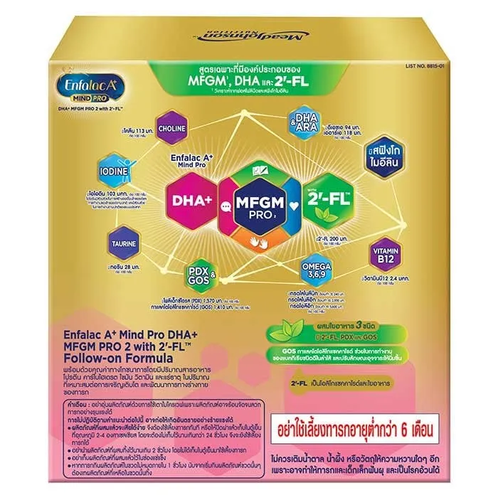 เพิ่มคุณค่าทางอาหารให้กับลูกน้อยด้วย เอนฟาแล็ค เอพลัส มายด์โปร ดีเอชเอพลัส MFGM โปร 2 วิท ทู-เอฟแอล สำหรับเด็กอายุ 6 เดือนถึง 3 ปี ที่มาพร้อมวิตามินและเกลือแร่ที่จำเป็นต่อการเจริญเติบโต ช่วยเสริมสร้างพัฒนาการที่ดี พร้อมให้ลูกน้อยเติบโตอย่างมั่นใจ และนมแม่ดีที่สุดสำหรับทารก<br />