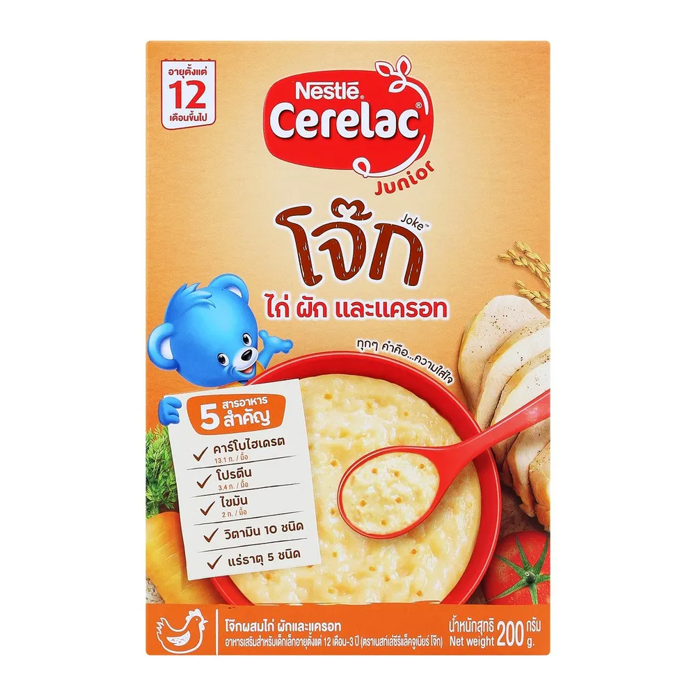 - เนสท์เล่ ซีรีแล็ค จูเนียร์ โจ๊ก สูตรไก่ ผัก และแครอท<br />