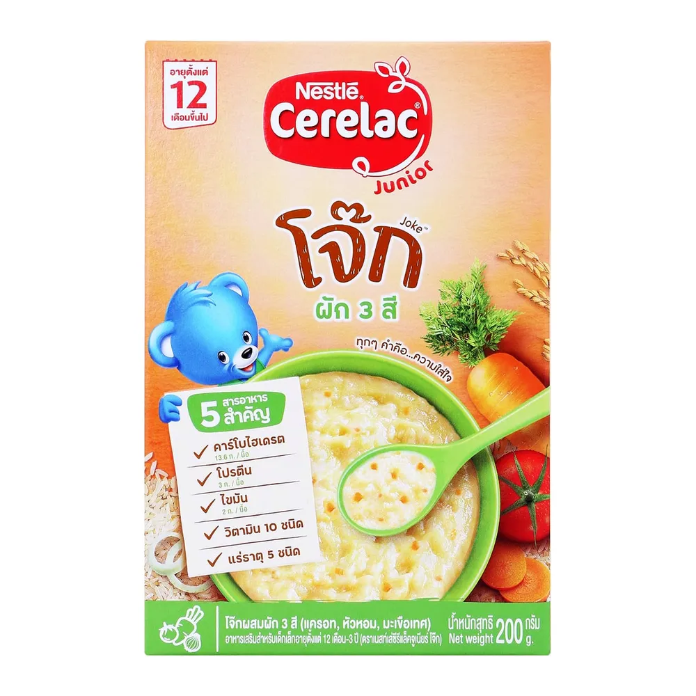 เนสท์เล่ ซีรีแล็ค จูเนียร์ โจ๊กผัก 3 สี อาหารเสริมสำหรับเด็ก 200 ก.