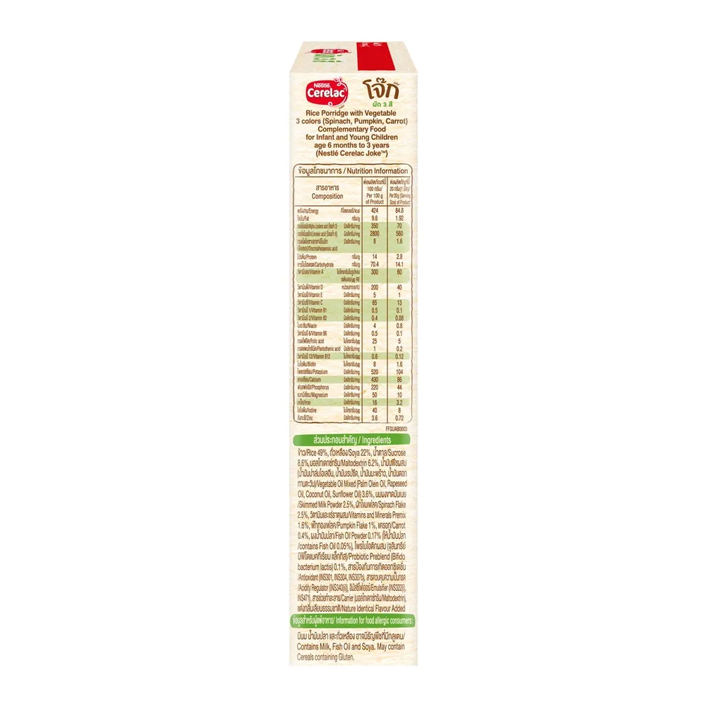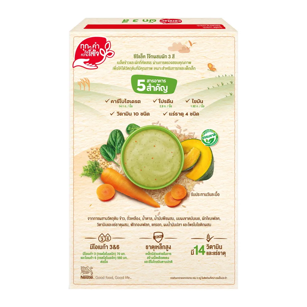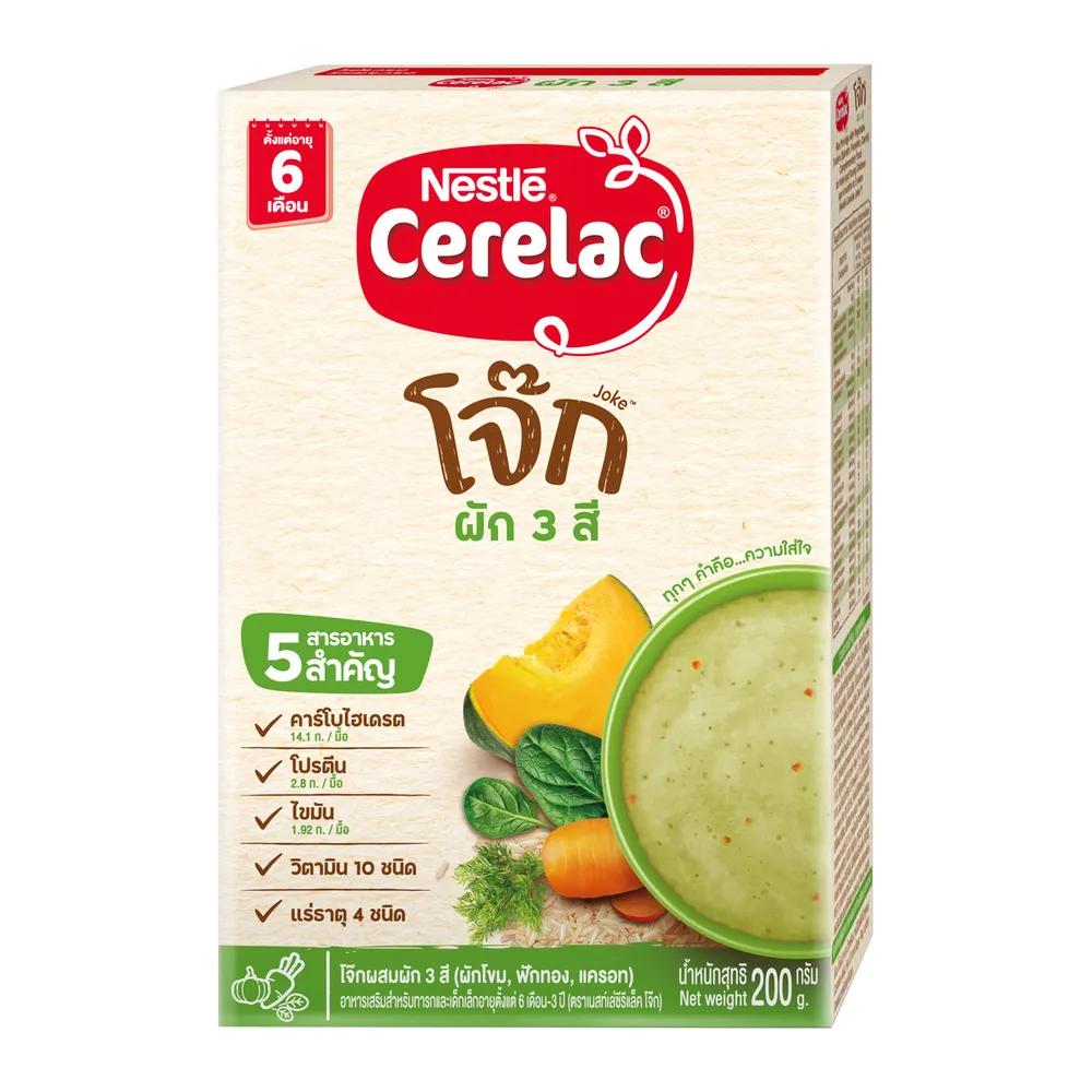 - เนสท์เล่ เนสท์เล่ ซีรีแล็ค โจ๊กผสมผัก 3 สี ผักโขม ฟักทอง และแครอท<br />