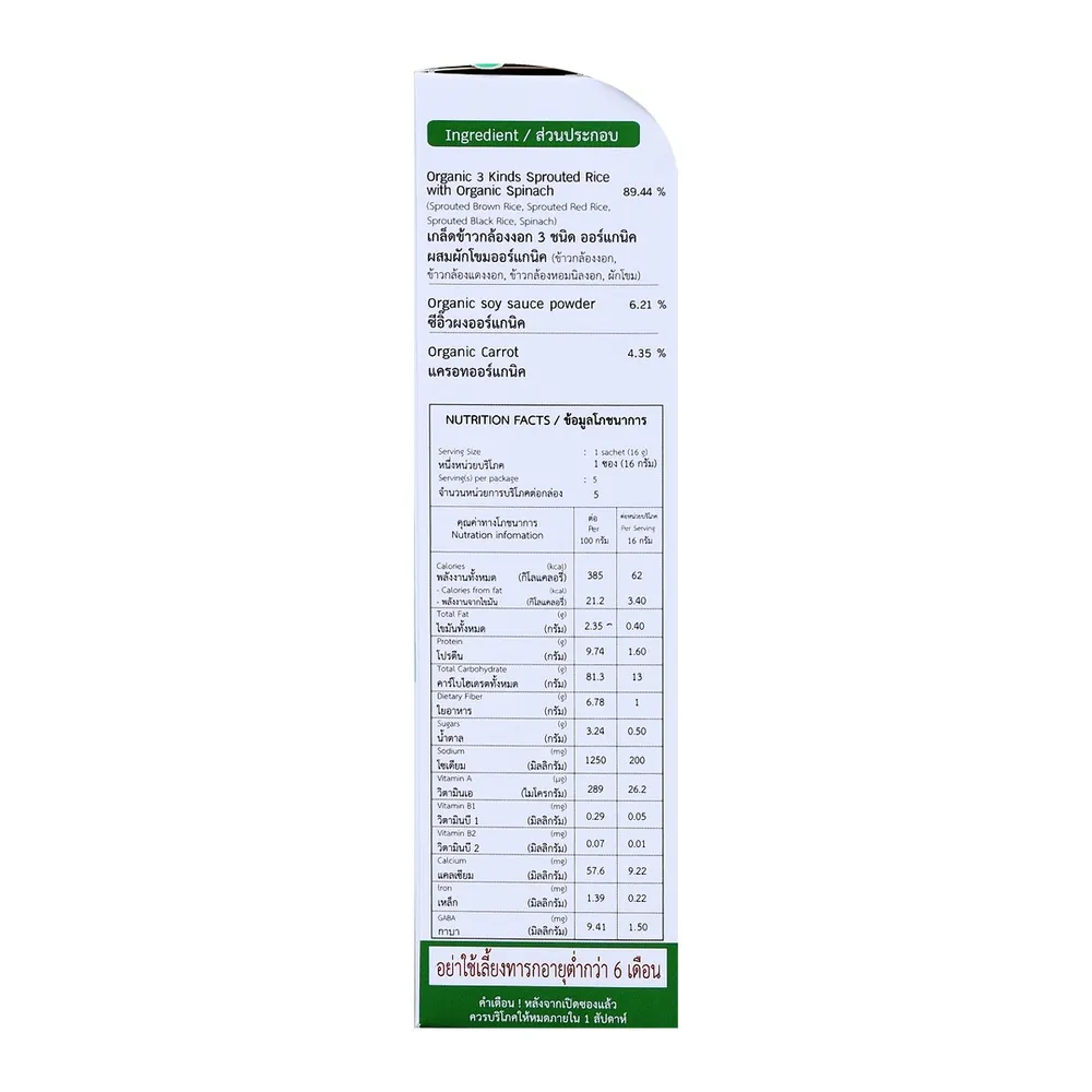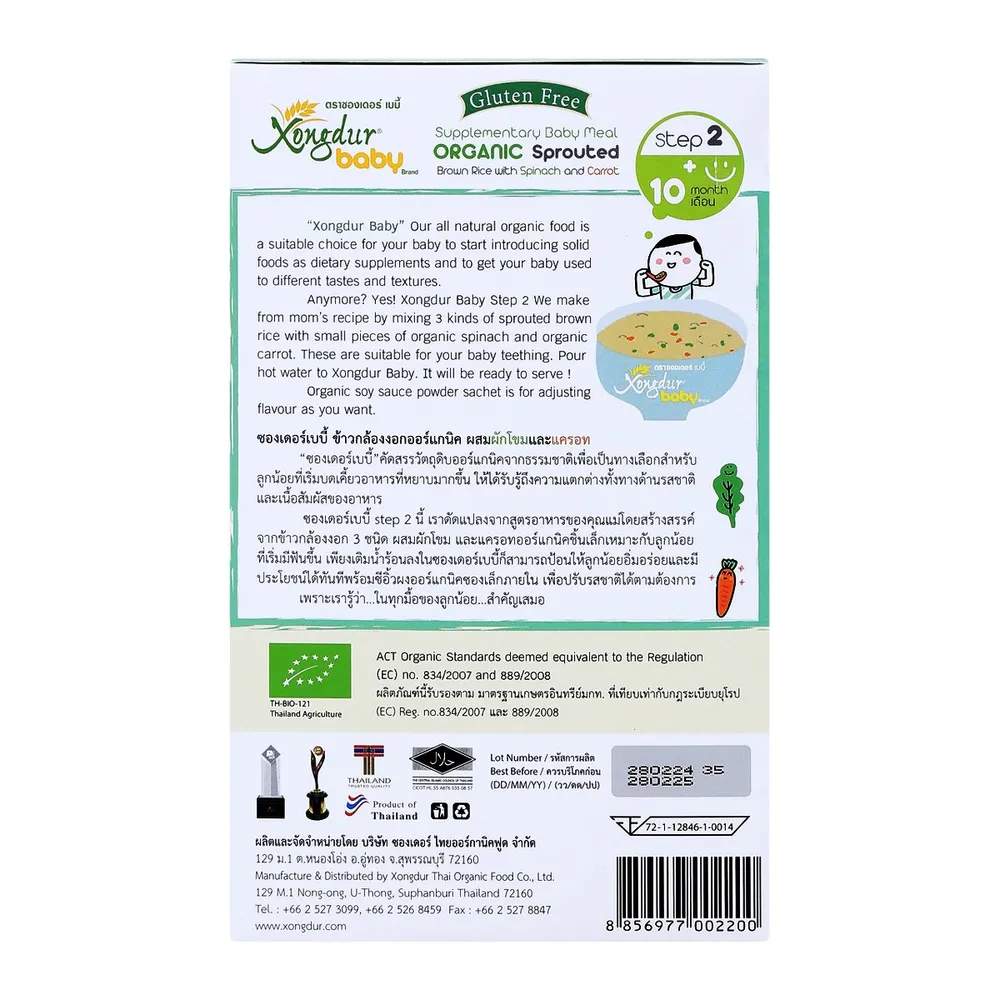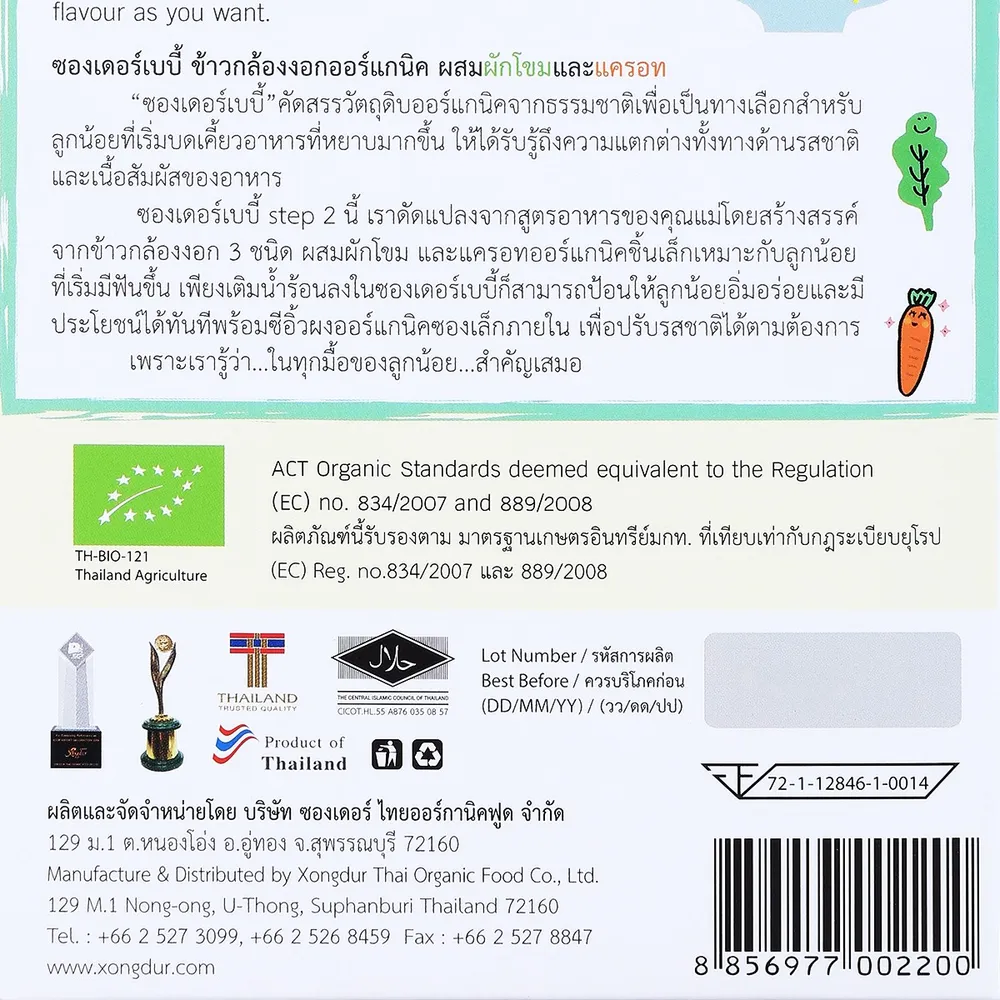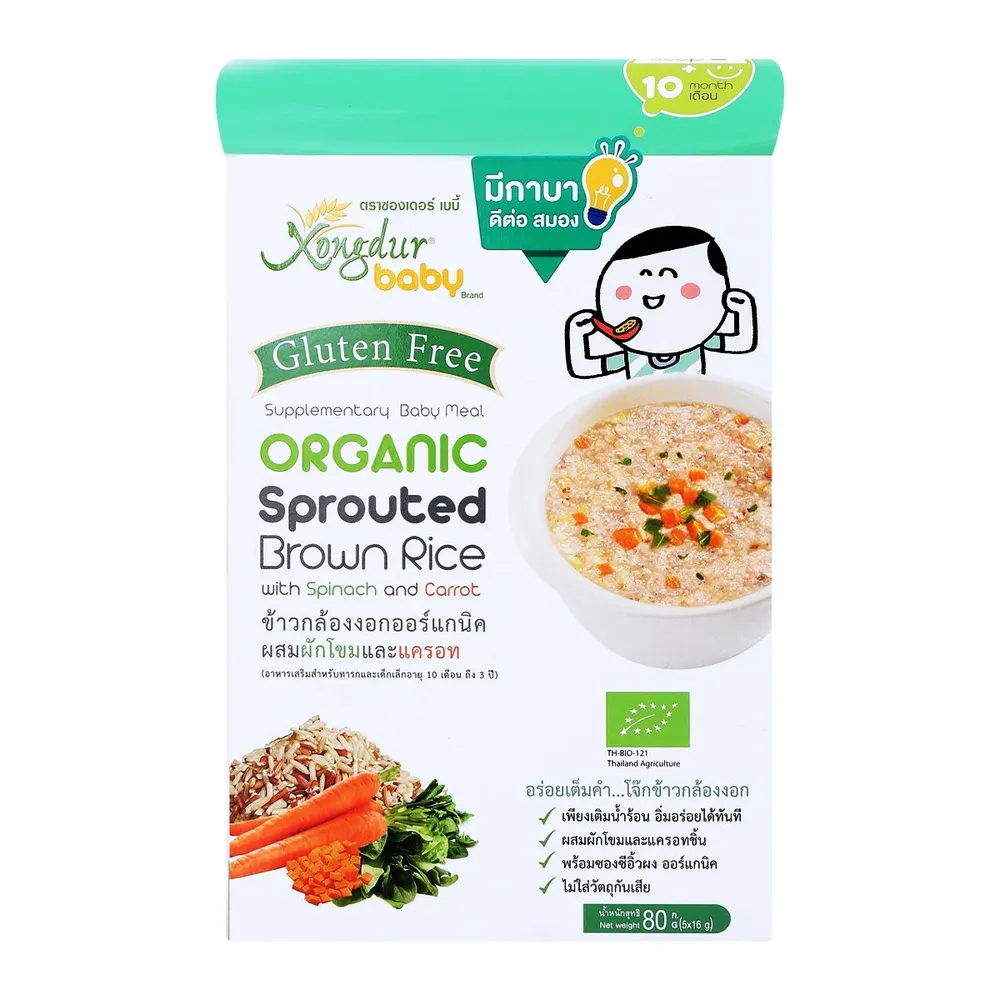 ซองเดอร์ เบบี้ โจ๊กข้าวกล้องงอกกึ่งสำเร็จรูป ออร์แกนิค สูตรผสมผักโขมและแครอท 80 ก. เพราะลูกน้อยเริ่มมีฟันและต้องการอาหารลักษณะเนื้อหยาบขึ้นเพื่อช่วยพัฒนาทักษะการเคี้ยว &quot;ซองเดอร์ เบบี้&quot; จึงได้พัฒนาโจ๊กข้าวกล้องงอกออร์แกนิค มีสารกาบาที่มีประโยชน์จากธรรมชาติ ไม่มีส่วนผสมของแป้งสาลี ไม่ปรุงแต่งสี กลิ่น รส และปราศจากวัตถุกันเสีย<br />