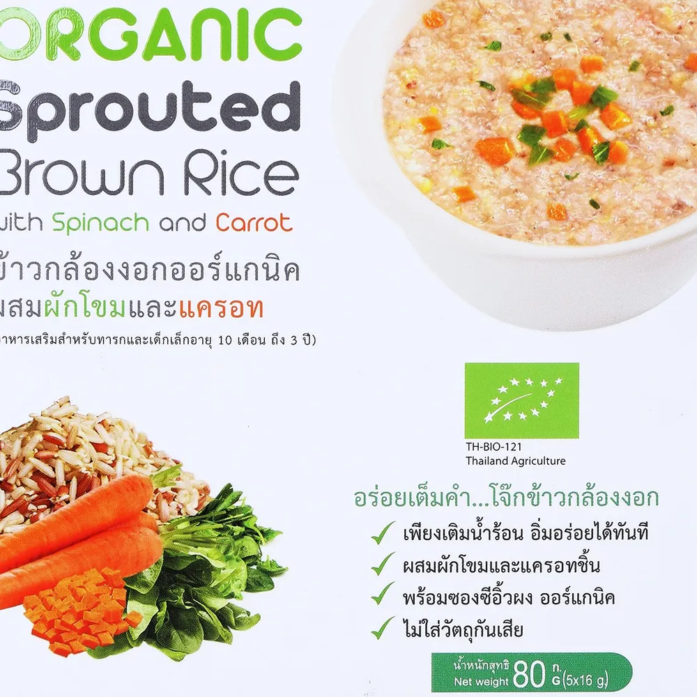 ซองเดอร์ เบบี้ โจ๊กข้าวกล้องงอกกึ่งสำเร็จรูป ออร์แกนิค สูตรผสมผักโขมและแครอท 80 ก.