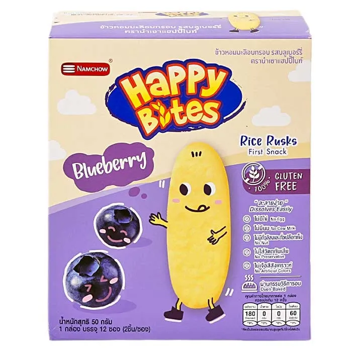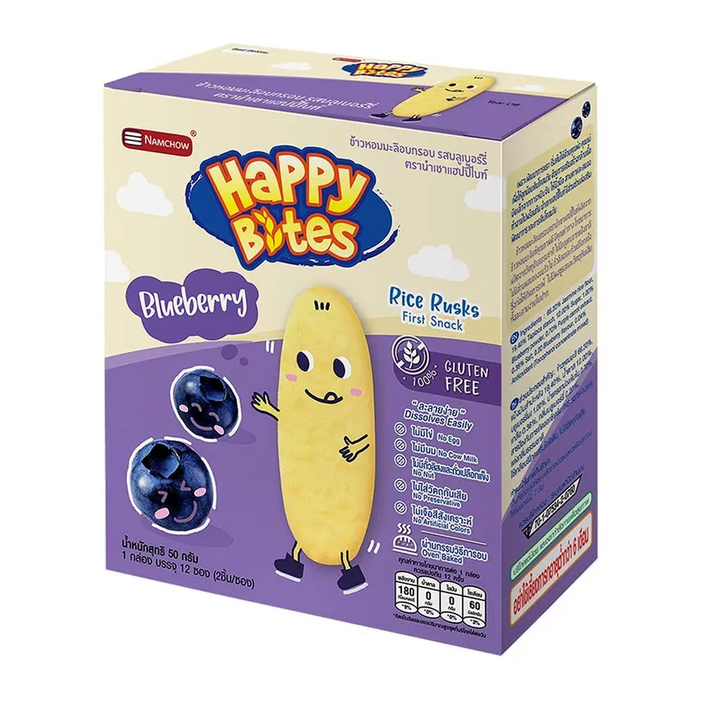 - นำเชาแฮปปี้ไบท์ ข้าวหอมมะลิอบกรอบ รสบลูเบอร์รี่<br />