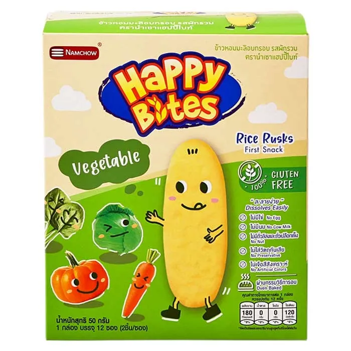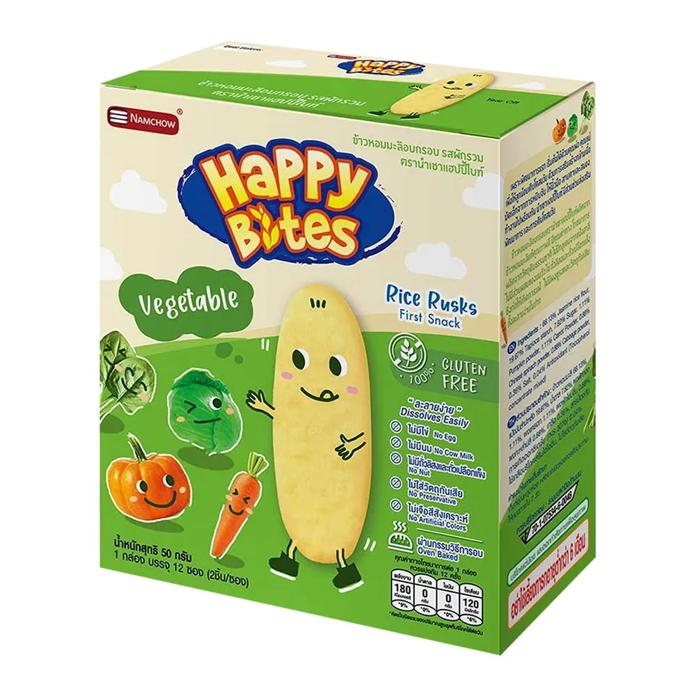 นำเชาแฮปปี้ไบท์ ข้าวหอมมะลิอบกรอบ รสผักรวม 50 ก.