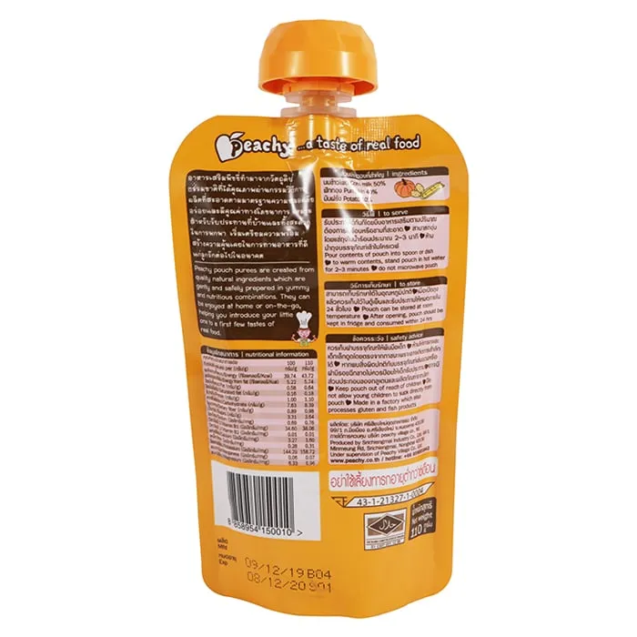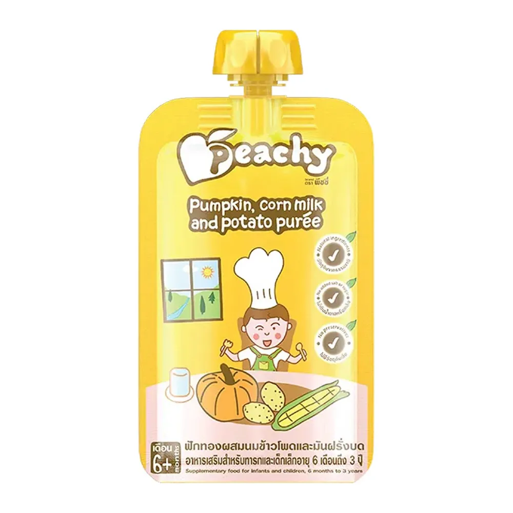 <p>อาหารเสริมสำหรับทารกและเด็กเล็กอายุ 6 เดือนถึง 3 ปีพีชชี่สูตรฟักทองผสมนมข้าวโพดและมันฝรั่งบด<br />