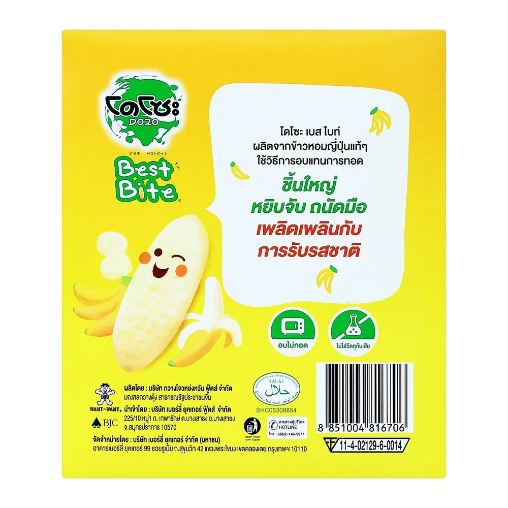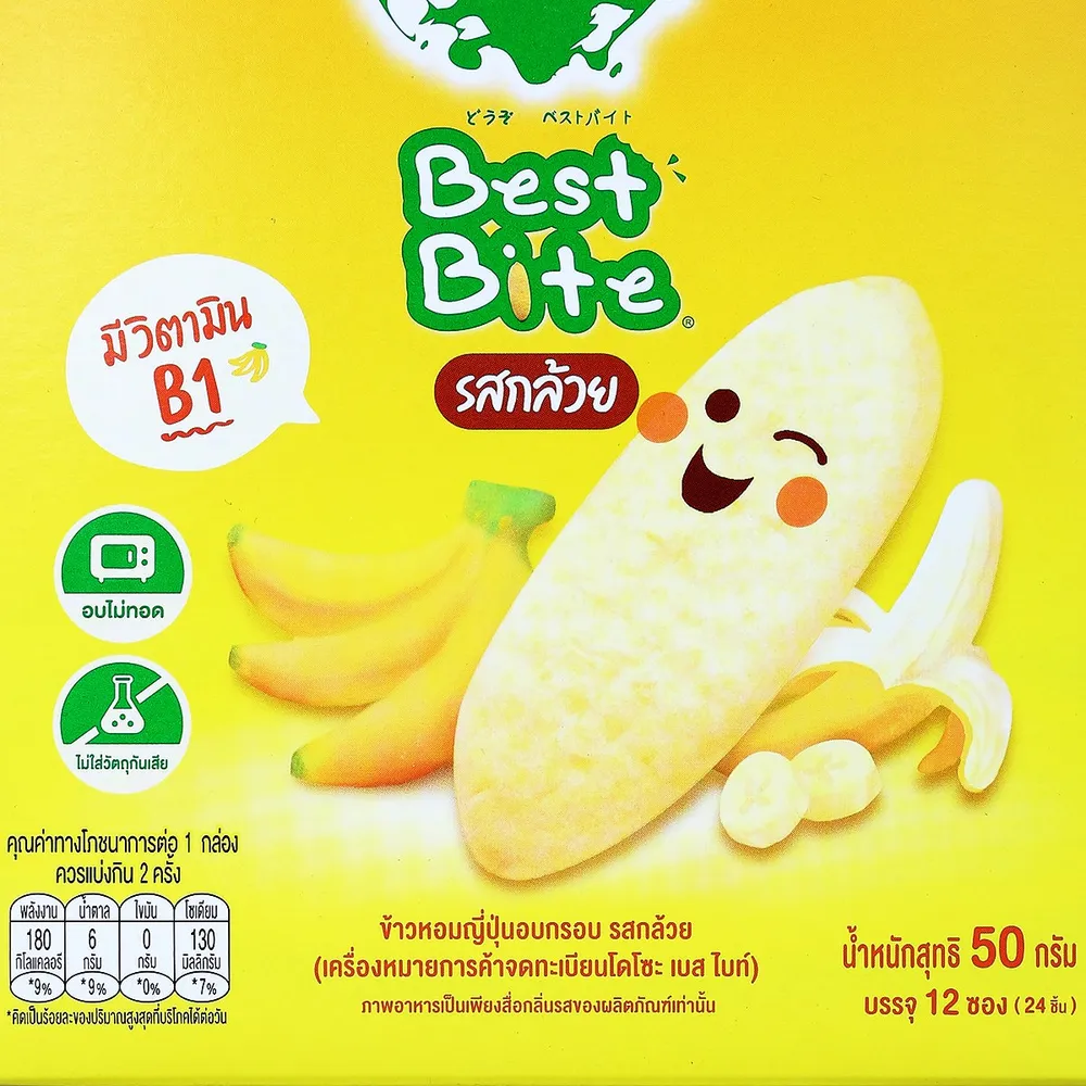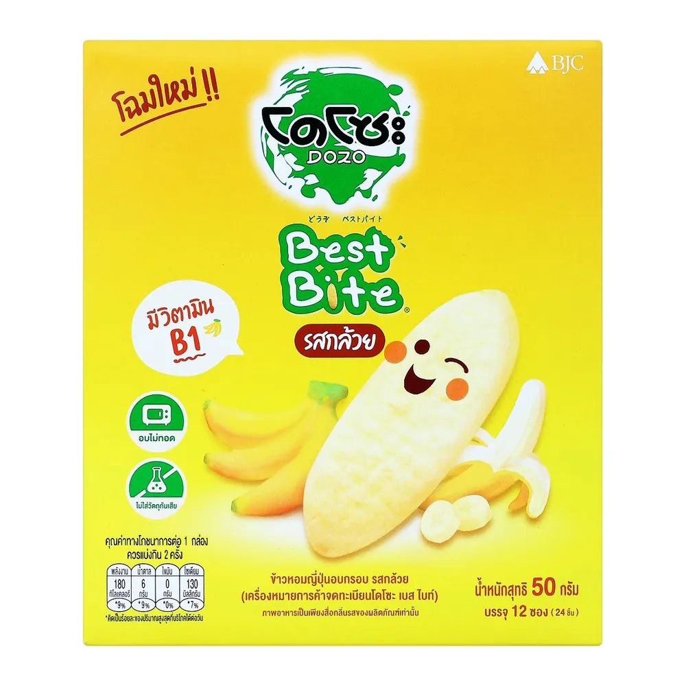 โดโซะ เบสไบท์ ข้าวหอมญี่ปุ่นอบกรอบสำหรับเด็ก รสกล้วย 50 ก.