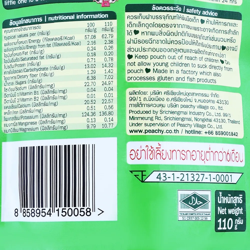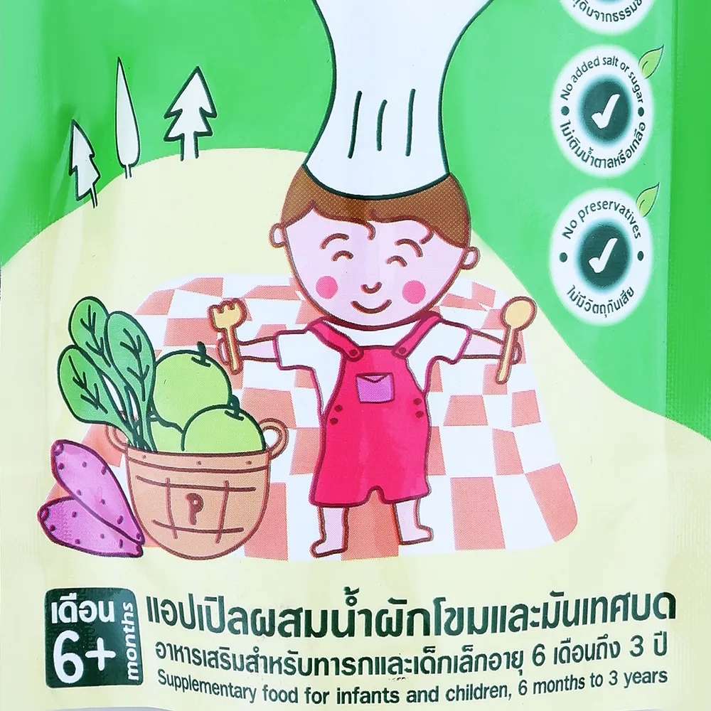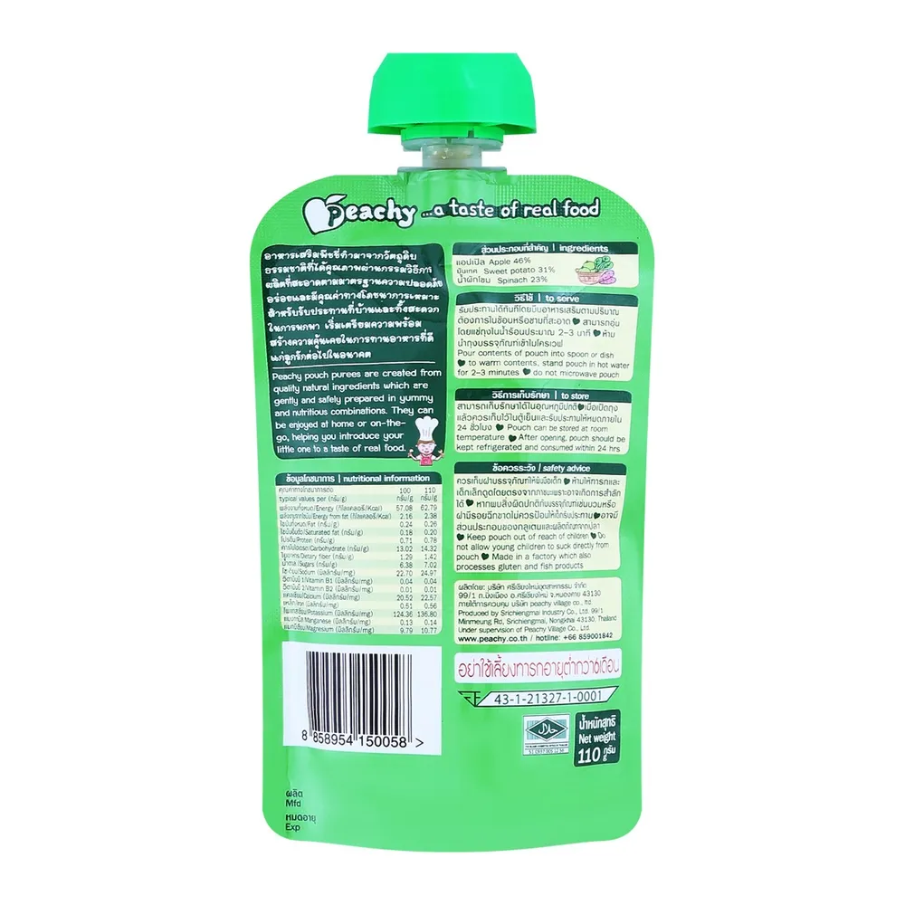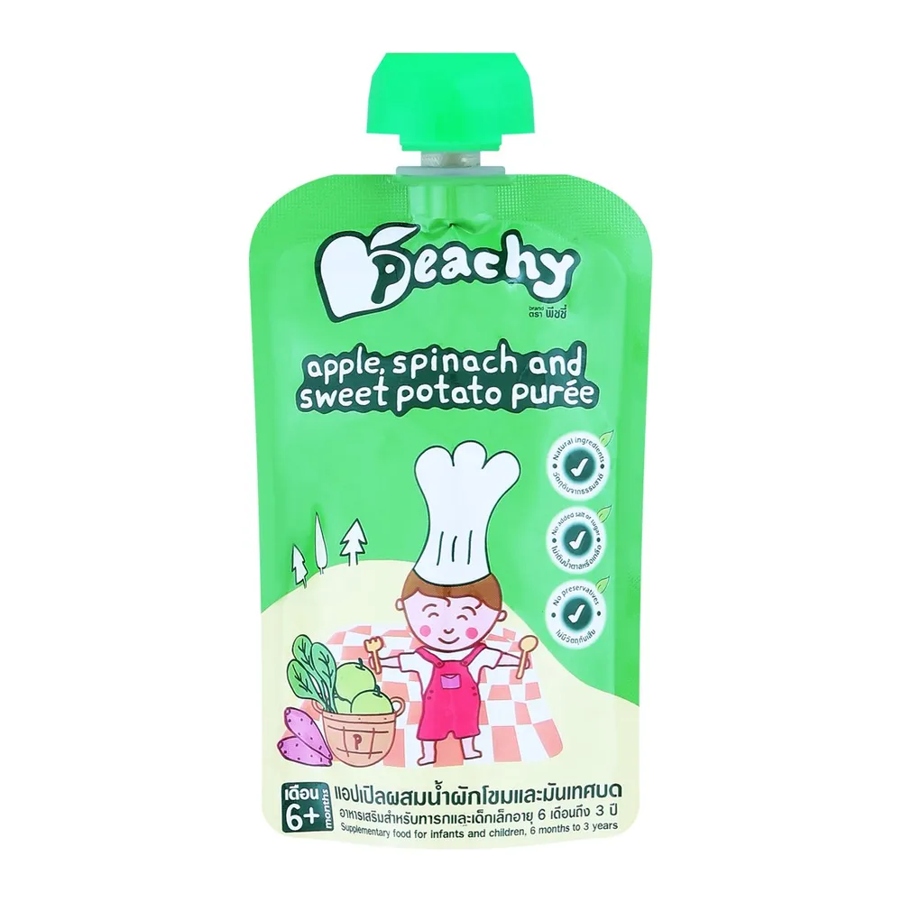 พีชชี่ อาหารเสริมทารกและเด็กเล็ก สูตรแอปเปิลผสมน้ำผักโขมและมันเทศบด 110 ก.