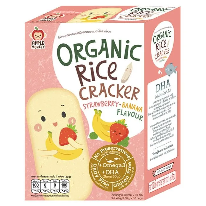 ขอแนะนำขนมทานเล่นสำหรับเด็กที่ถูกคัดสรรและคิดค้นโดยแบรนด์ แอปเปิ้ลมังกี้ ให้ออกมาในรูปแบบของ ข้าวอบกรอบออร์แกนิค ที่กรุบกรอบ พร้อมอุดมไปด้วยสารอาหารที่ช่วยเสริมสร้างร่างกายให้สมบูรณ์แข็งแรงเหมาะสมต่อวัย ทั้งยังหอมกลิ่นสตรอว์เบอร์รี่และกล้วยจนอร่อยแบบคาดไม่ถึง ลองแล้วระวังคุณหนูๆจะติดใจ<br />