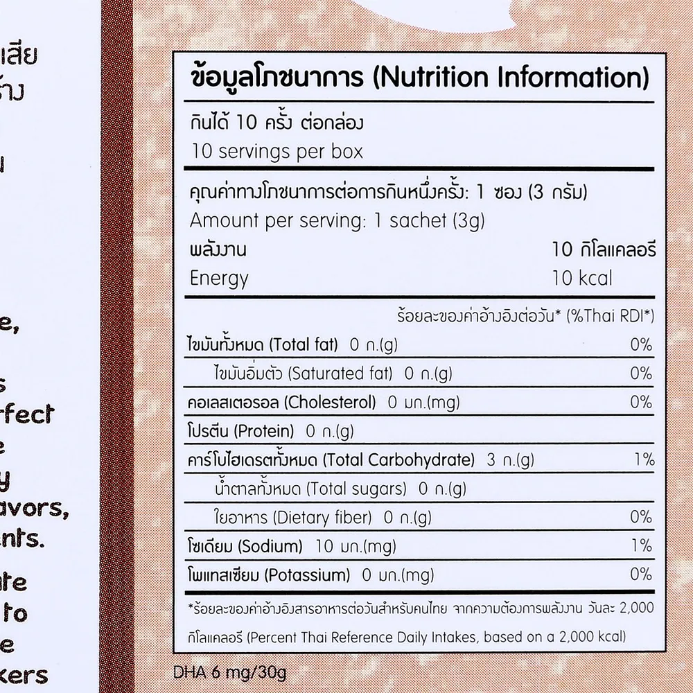 - ไม่ใส่วัตถุกันเสียหรือผงปรุงรส<br />