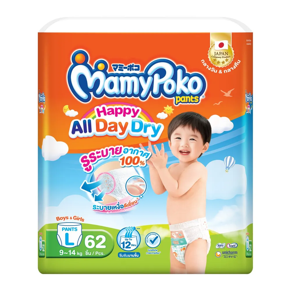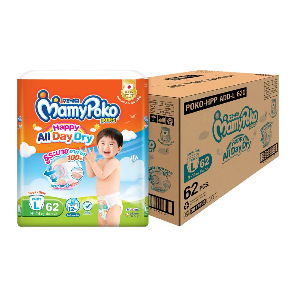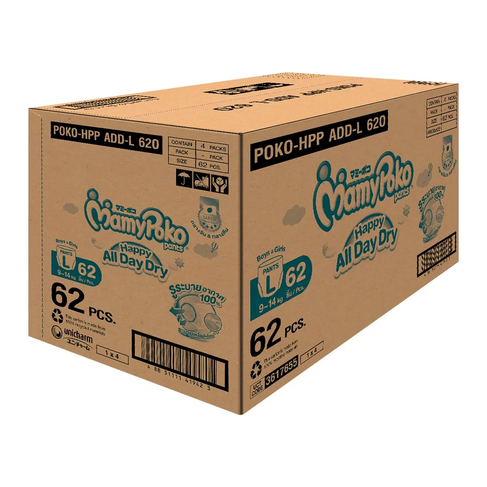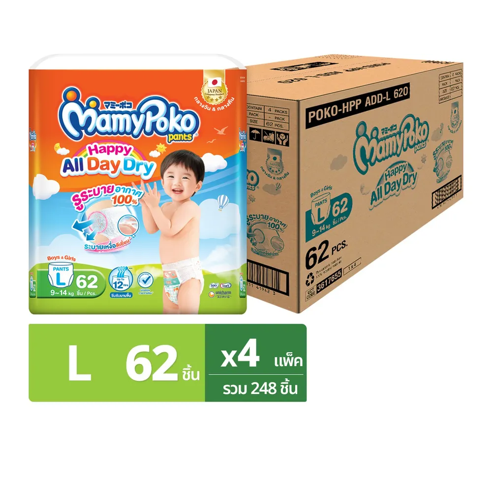 มามี่โพโค แพ้นท์ กางเกงผ้าอ้อม รุ่นแฮปปี้ ออลเดย์ดราย ขนาด L 62 ชิ้น x 4 แพ็ค