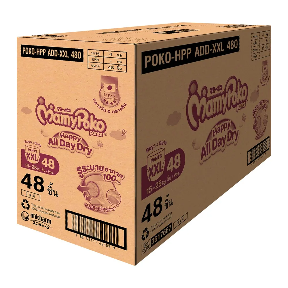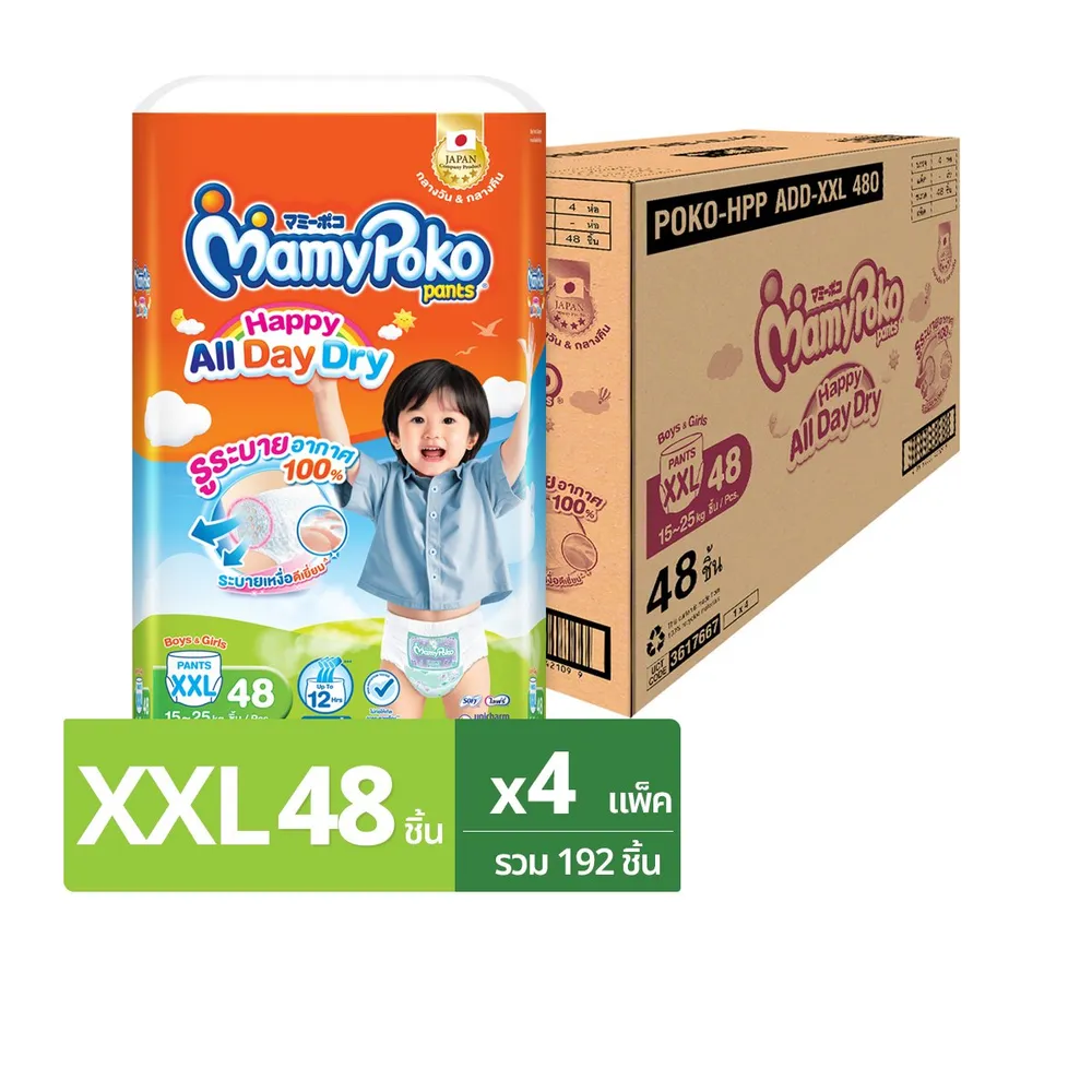 มามี่โพโค แพ้นท์ กางเกงผ้าอ้อม รุ่นแฮปปี้ ออลเดย์ดราย ขนาด XXL 48 ชิ้น x 4 แพ็ค