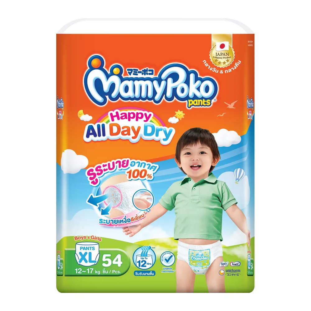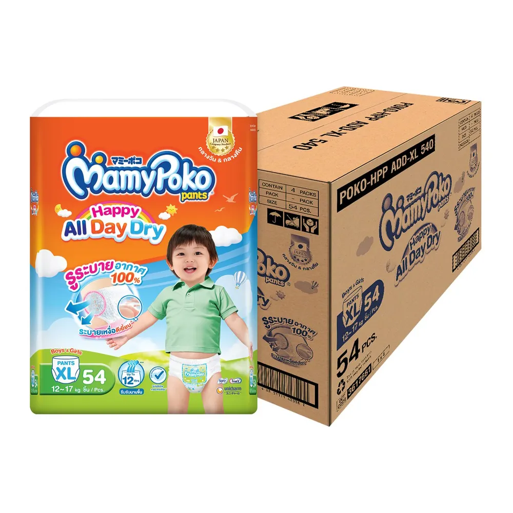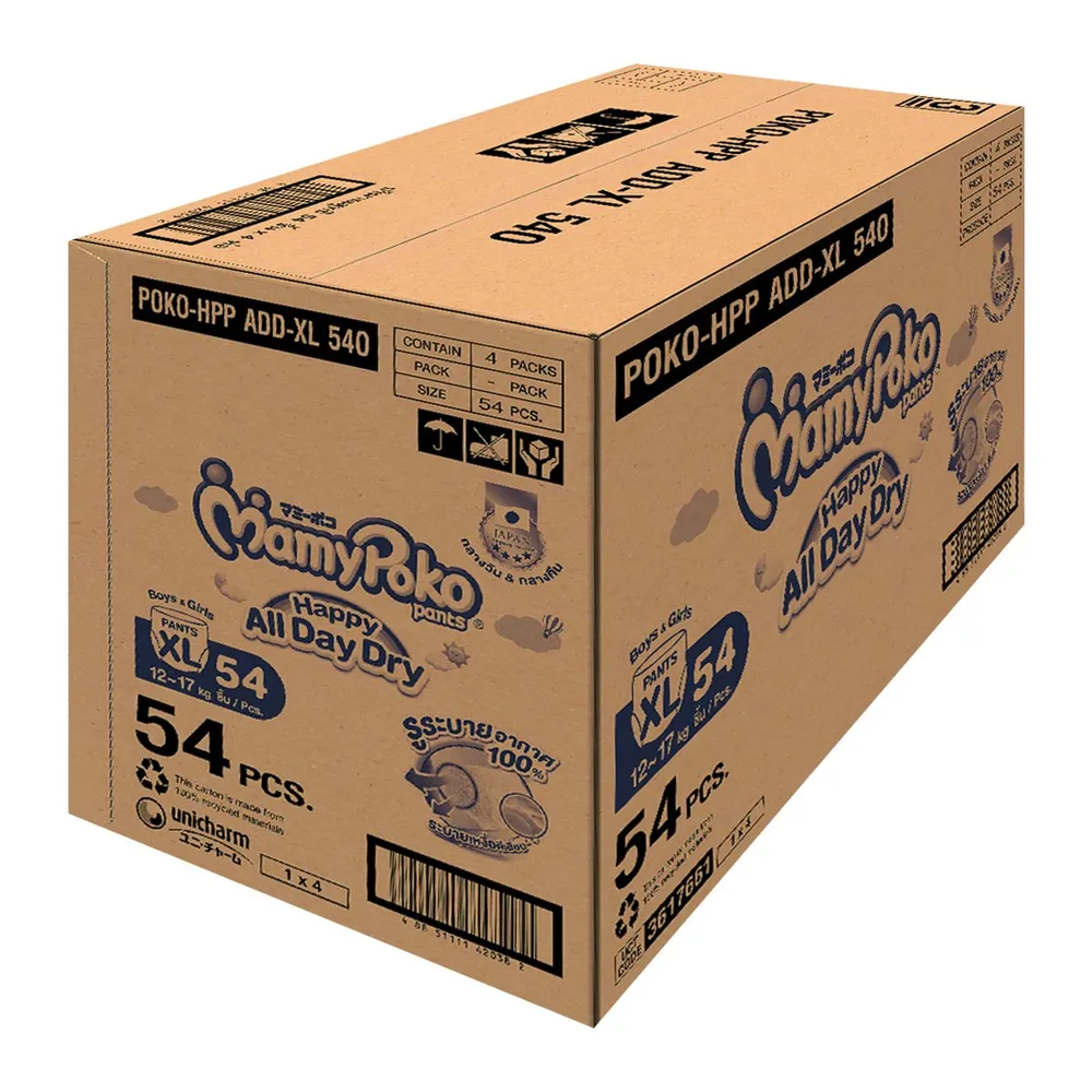 มามี่โพโค แพ้นท์ กางเกงผ้าอ้อม รุ่นแฮปปี้ ออลเดย์ดราย ขนาด XL 54 ชิ้น x 4 แพ็ค