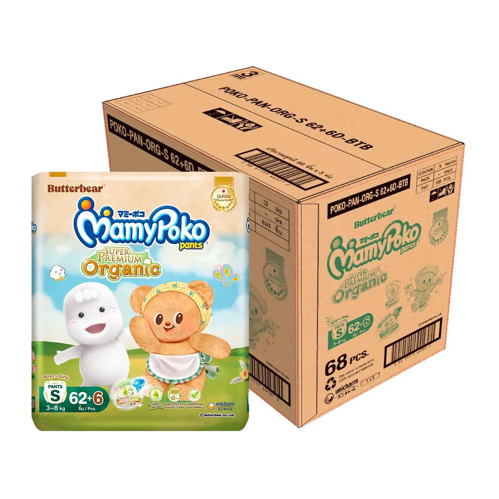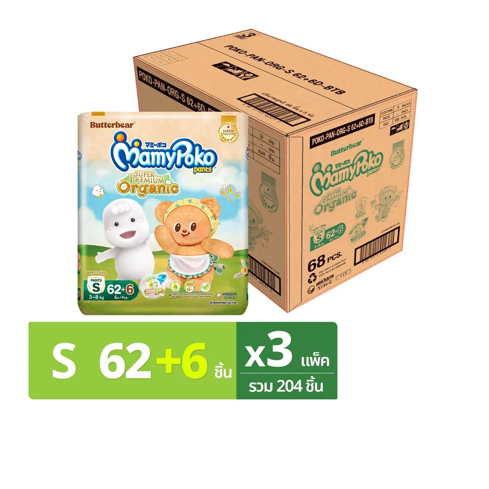 มามี่โพโค แพ้นท์ ซุปเปอร์ พรีเมียม ออร์แกนิค กางเกงผ้าอ้อม ขนาด S 62+6 ชิ้น x 3 แพ็ค