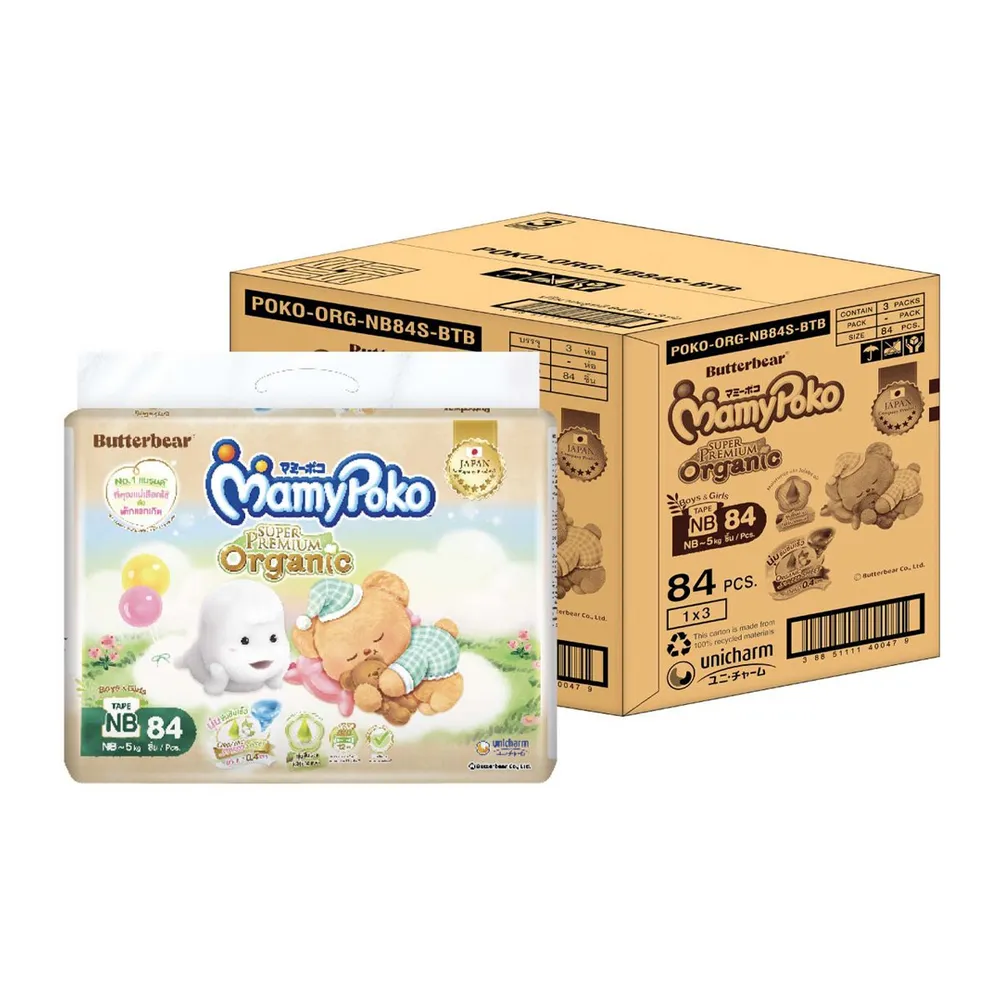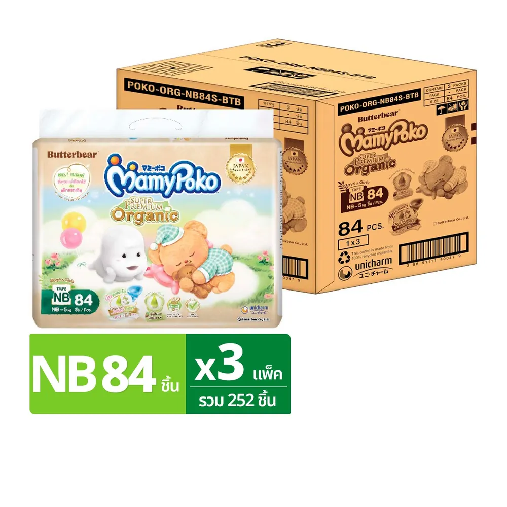 มามี่โพโค ซุปเปอร์ พรีเมี่ยม ออร์แกนิค ผ้าอ้อมแบบเทป ขนาด NB จำนวน 84 ชิ้น x 3 แพ็ค