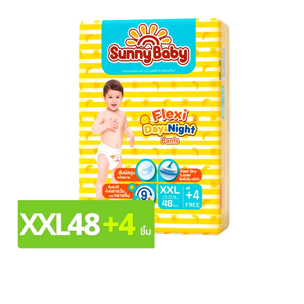 ซันนี่ เบบี้ เฟล็กซี่ เดย์แอนด์ไนท์ แพ้นท์ กางเกงผ้าอ้อม ขนาด XXL 48+4 ชิ้น