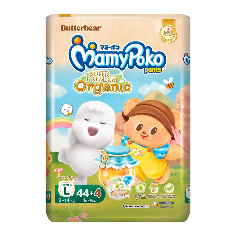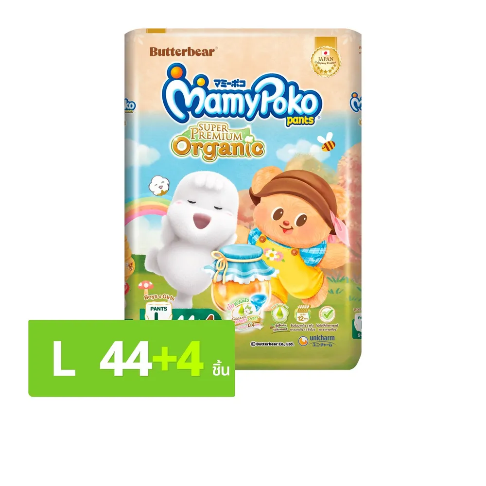 มามี่โพโค แพ้นท์ กางเกงผ้าอ้อม ซุปเปอร์ พรีเมียม ออร์แกนิค ขนาด L 44+4 ชิ้น