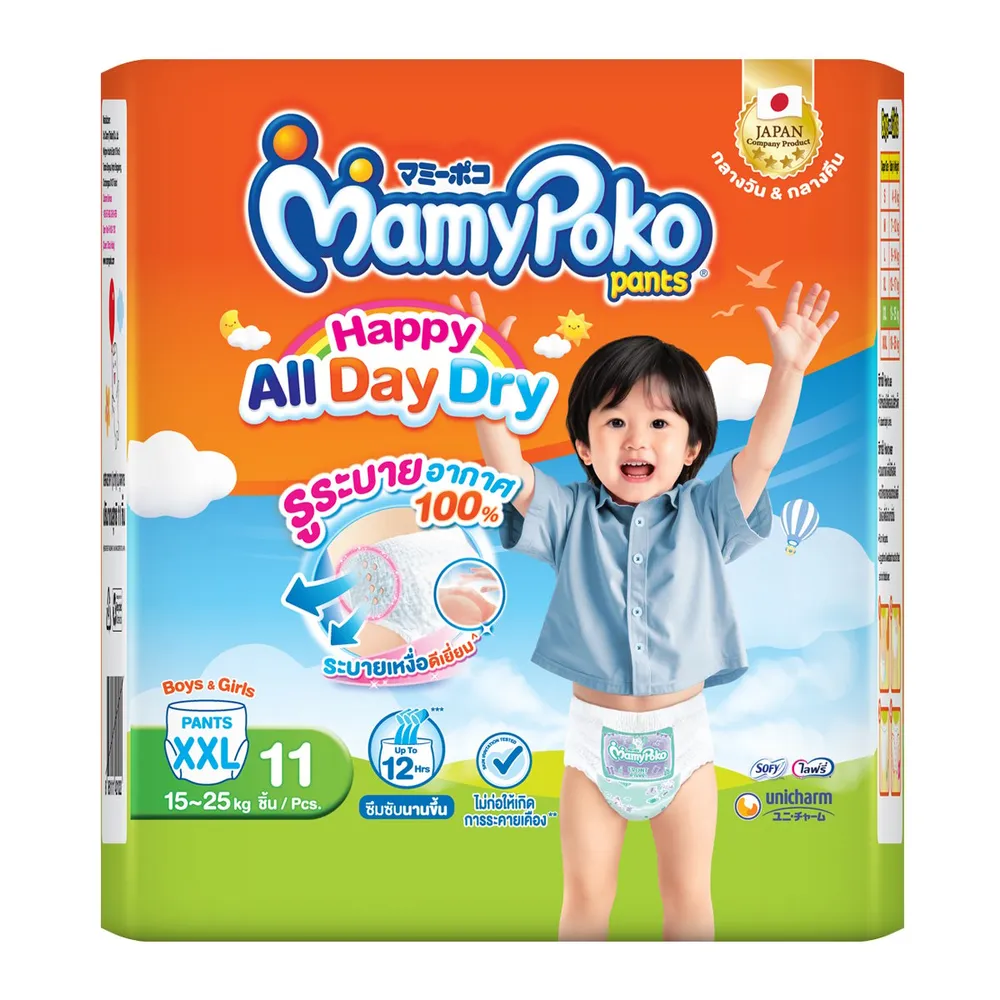 มามี่โพโค แพ้นท์ กางเกงผ้าอ้อม รุ่นแฮปปี้ ออลเดย์ดราย ขนาด XXL 11 ชิ้น