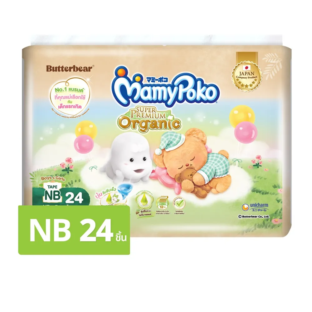 มามี่โพโค ซุปเปอร์ พรีเมี่ยม ออร์แกนิค ผ้าอ้อมแบบเทป ขนาด NB จำนวน 24 ชิ้น
