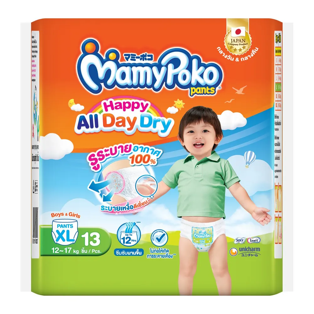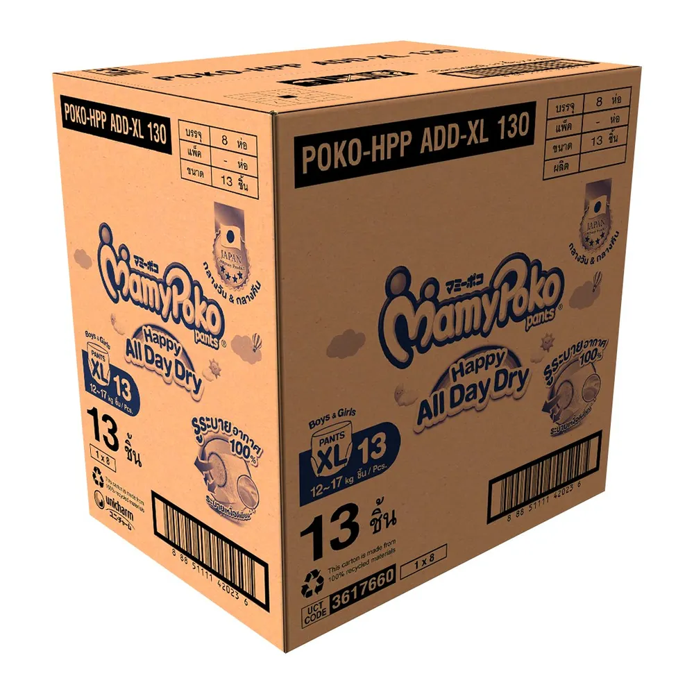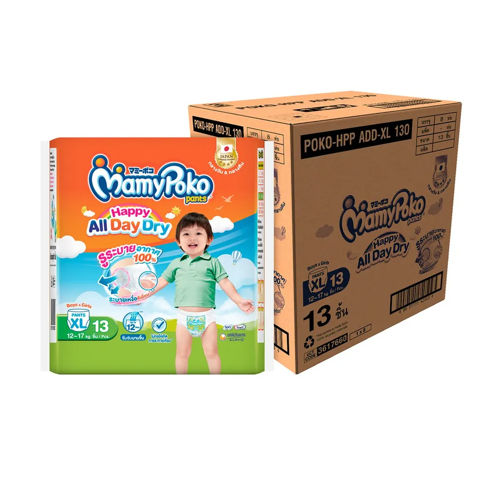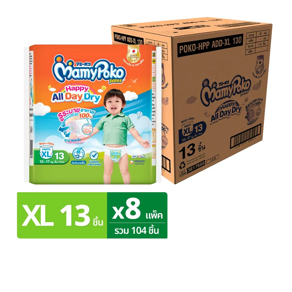 มามี่โพโค แพ้นท์ กางเกงผ้าอ้อม รุ่นแฮปปี้ ออลเดย์ดราย ขนาด XL 13 ชิ้น x 8 แพ็ค