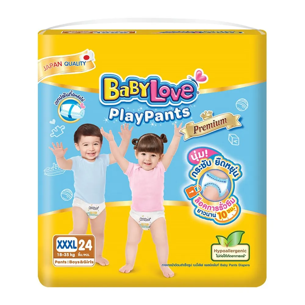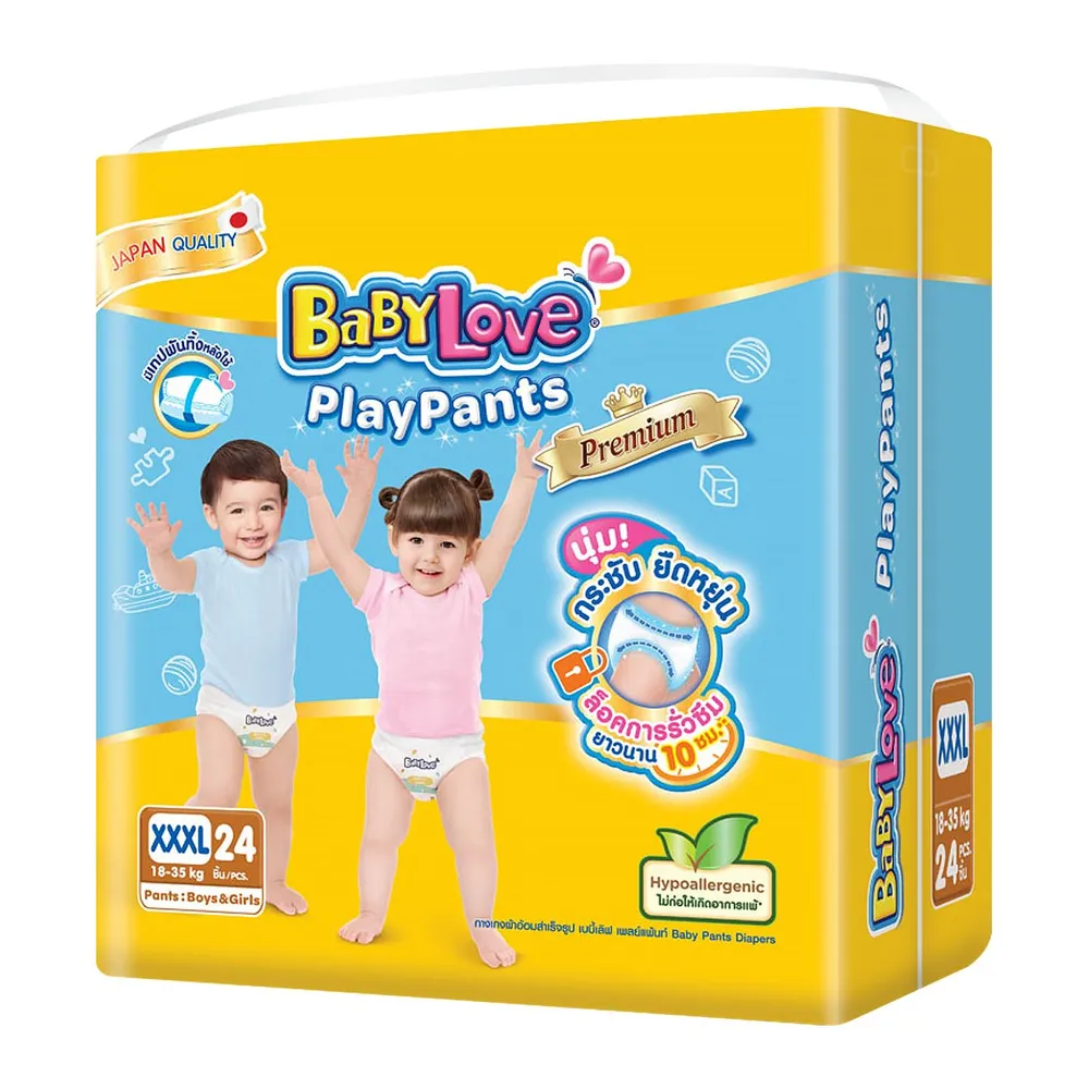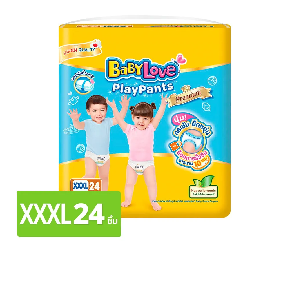 เบบี้เลิฟ เพลย์แพ้นท์ พรีเมี่ยม กางเกงผ้าอ้อม ขนาด XXXL 24 ชิ้น