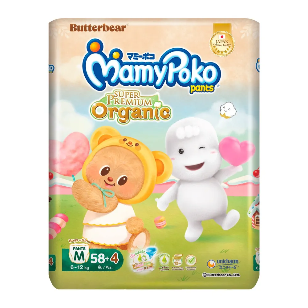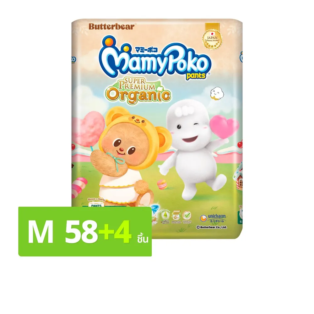 มามี่โพโค แพ้นท์ กางเกงผ้าอ้อม ซุปเปอร์ พรีเมียม ออร์แกนิค ขนาด M 58+4 ชิ้น