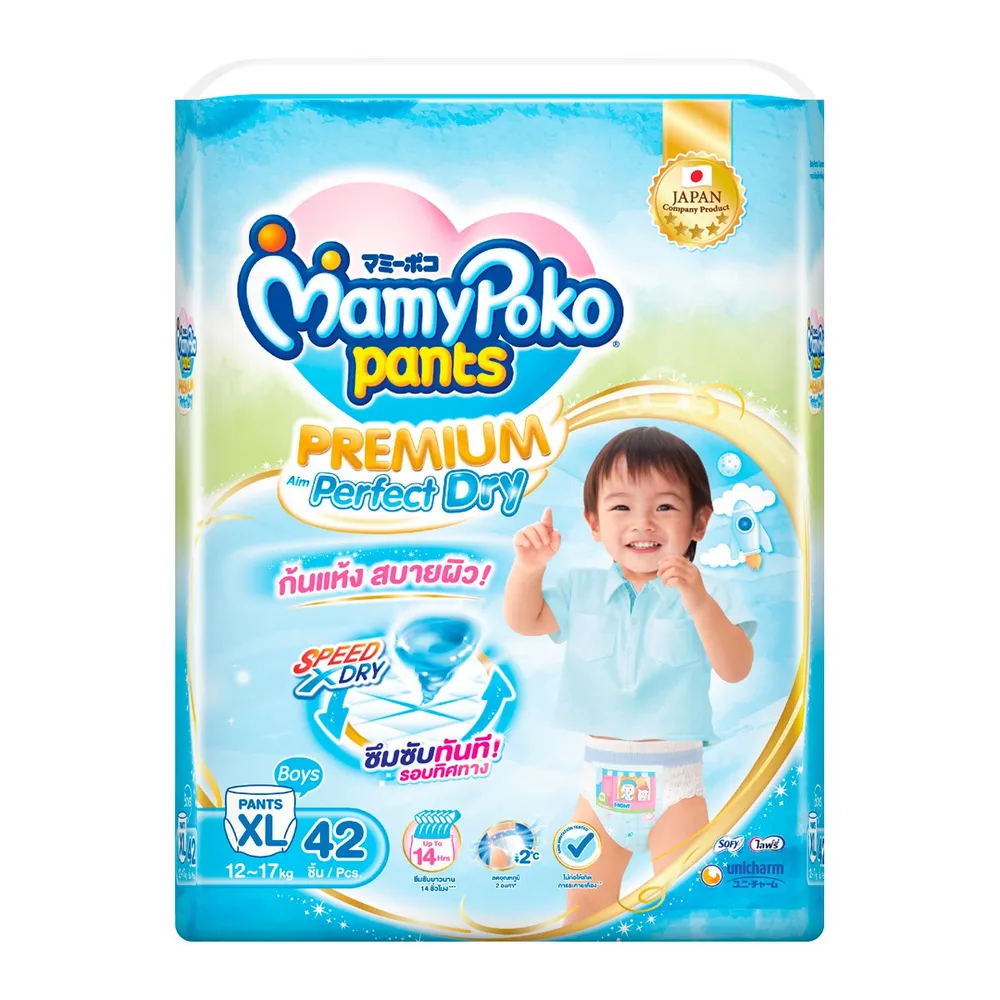 มามี่โพโค แพนท์ กางเกงผ้าอ้อม พรีเมียม เอม เพอร์เฟกต์ ดราย สำหรับเด็กชาย ขนาด XL 42 ชิ้น