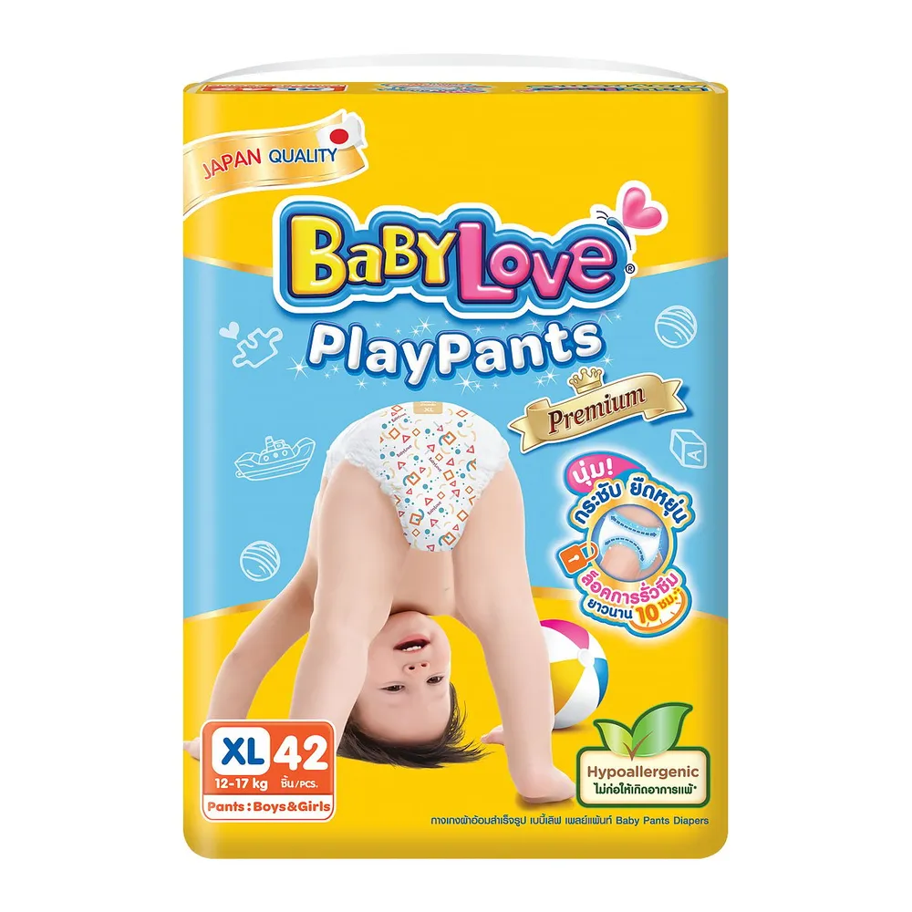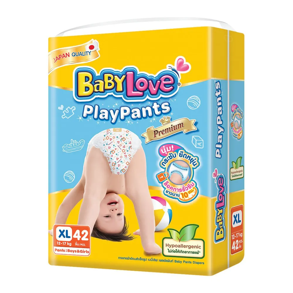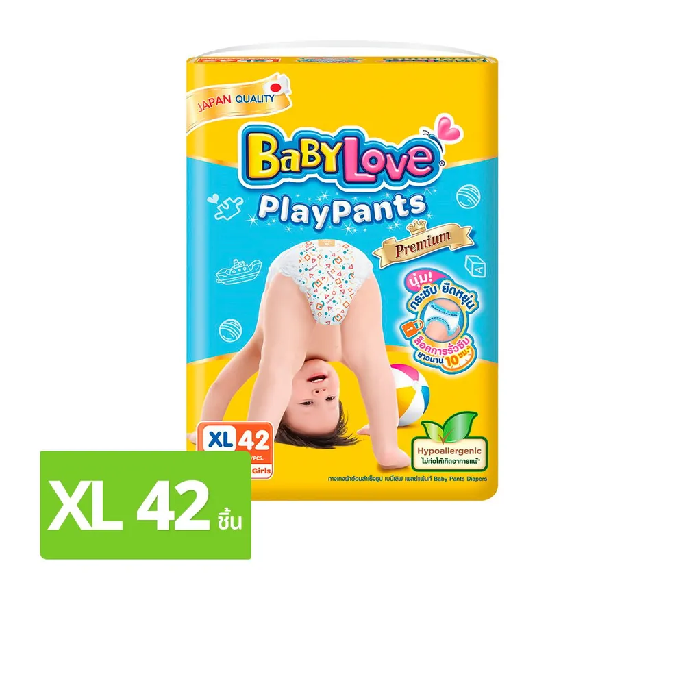 เบบี้เลิฟ เพลย์แพ้นท์ พรีเมี่ยม กางเกงผ้าอ้อม จัมโบ้แพ็ค ขนาด XL 42 ชิ้น
