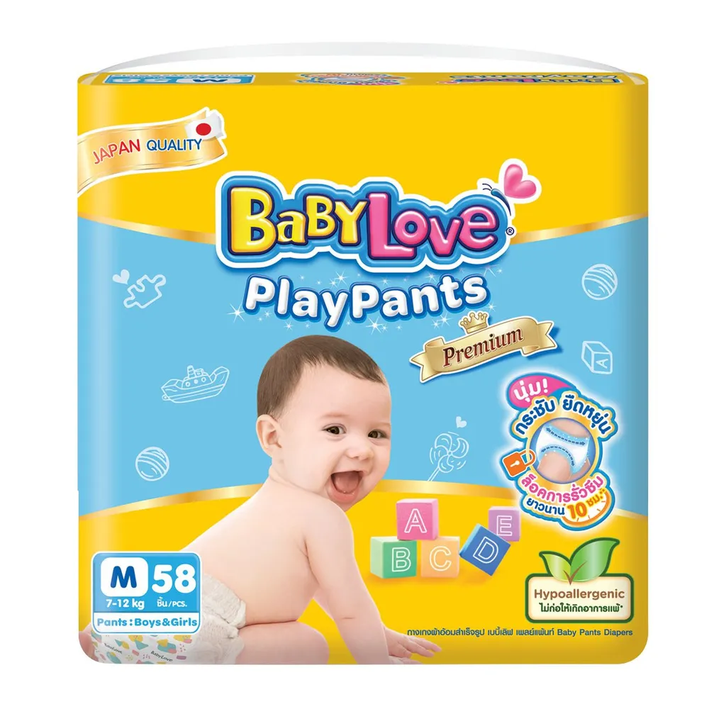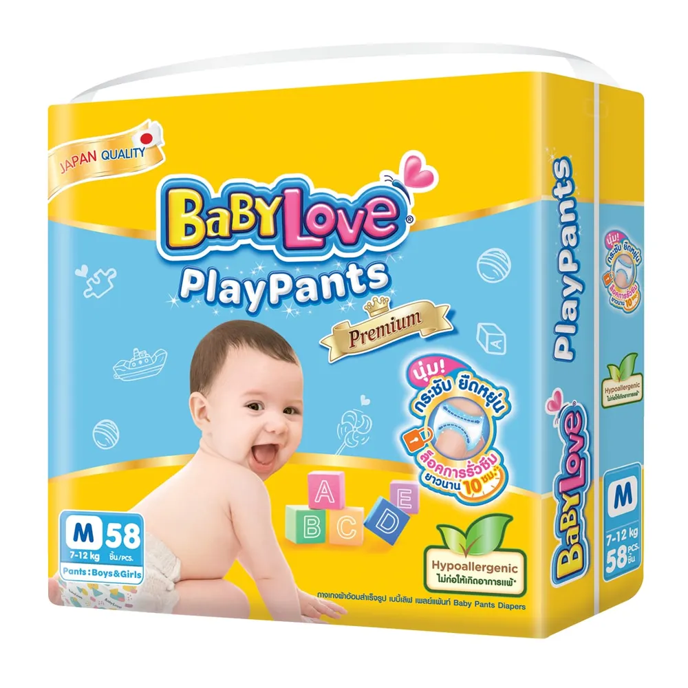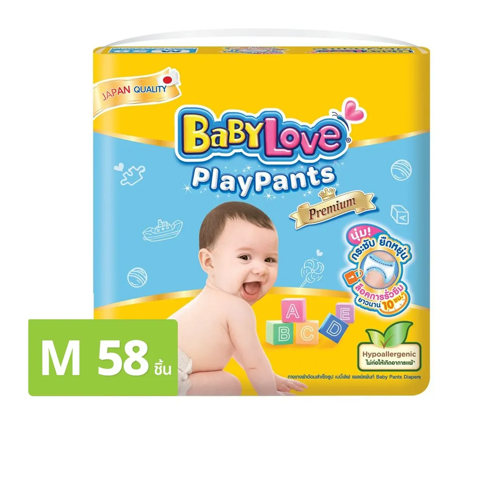 เบบี้เลิฟ เพลย์แพ้นท์ พรีเมี่ยม กางเกงผ้าอ้อม จัมโบ้แพ็ค ขนาด M 58 ชิ้น
