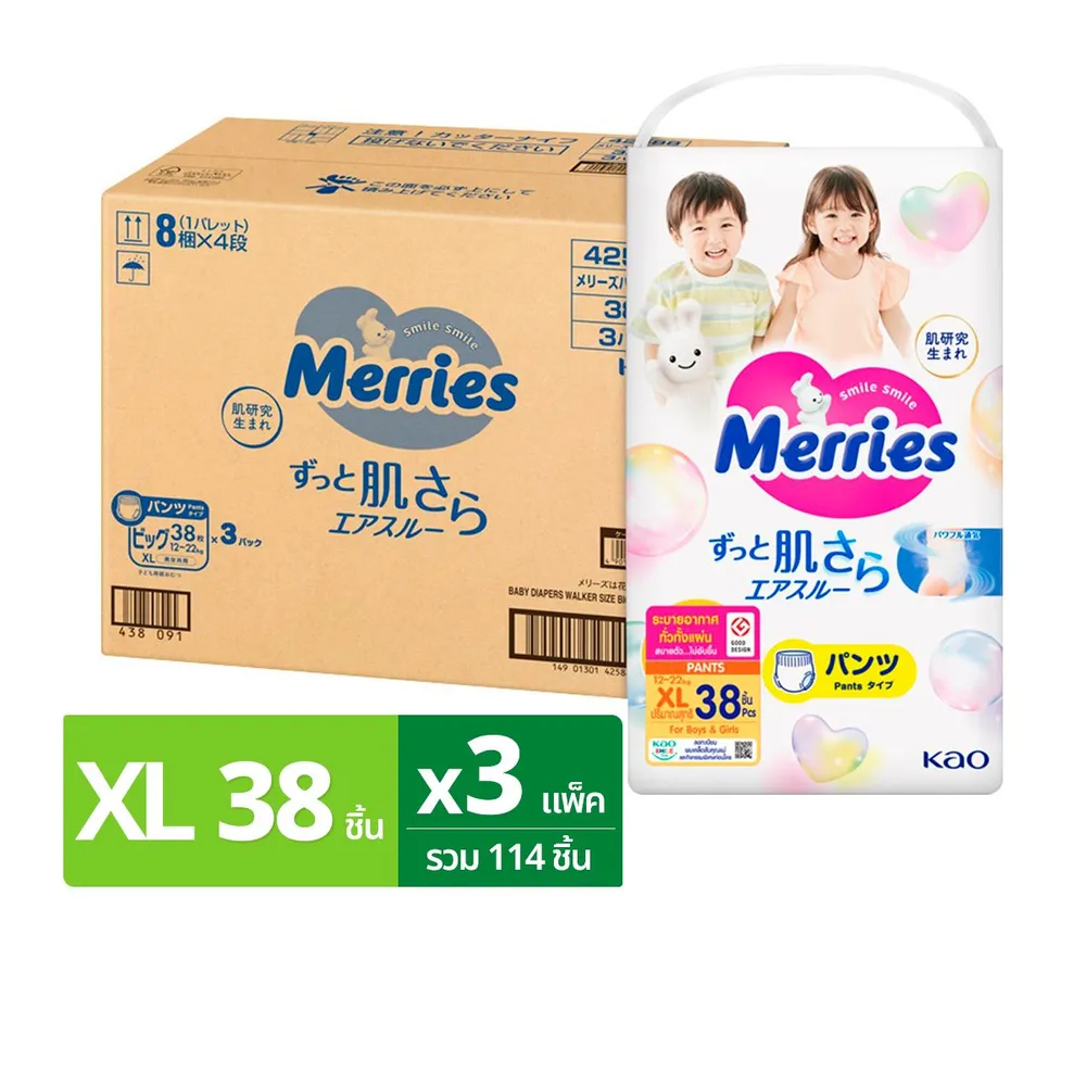 เมอร์รี่ส์ ผ้าอ้อมเด็กชนิดกางเกง ไซส์ XL 38 ชิ้น แพ็ค 3