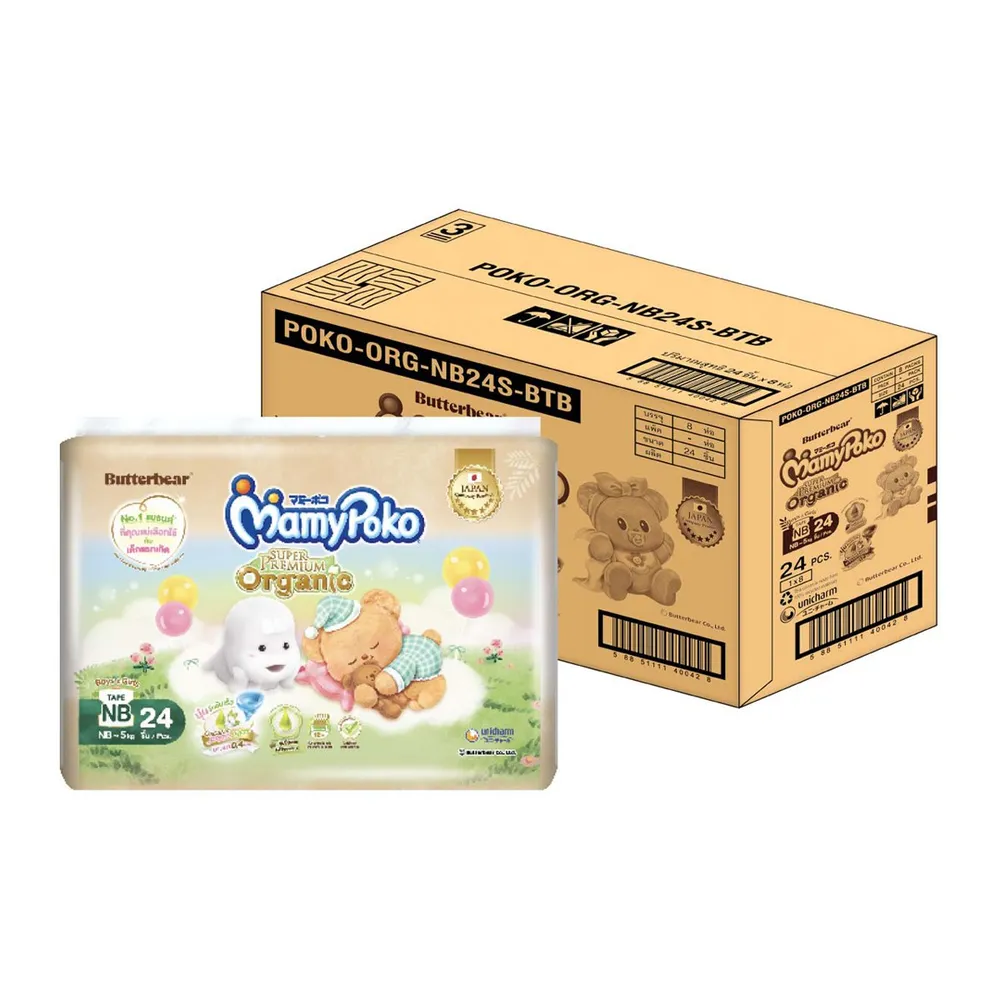 <p>มามี่โพโค ซุปเปอร์ พรีเมี่ยม ออร์แกนิค ผ้าอ้อมแบบเทป ขนาด NB 24 ชิ้น<br />