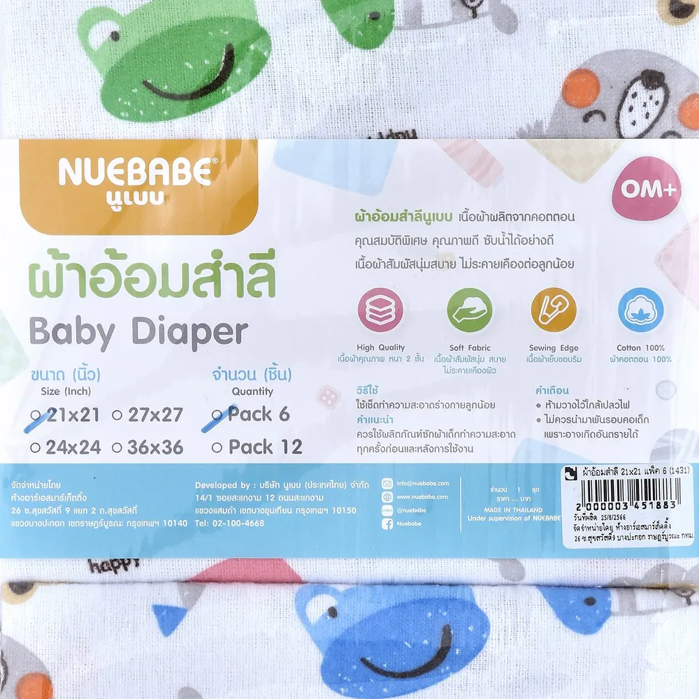 อาร์เอส ผ้าอ้อมสำลี เกรด A ขนาด 21 x 21 นิ้ว แพ็ค 6 ผืน