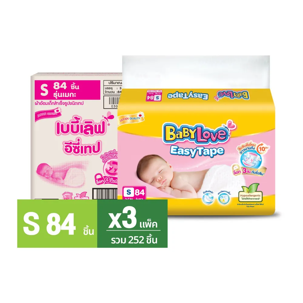 เบบี้เลิฟ อีซี่ เทป ผ้าอ้อมเด็ก เมก้าแพ็ค ขนาด S 84 ชิ้น X 3 แพ็ค