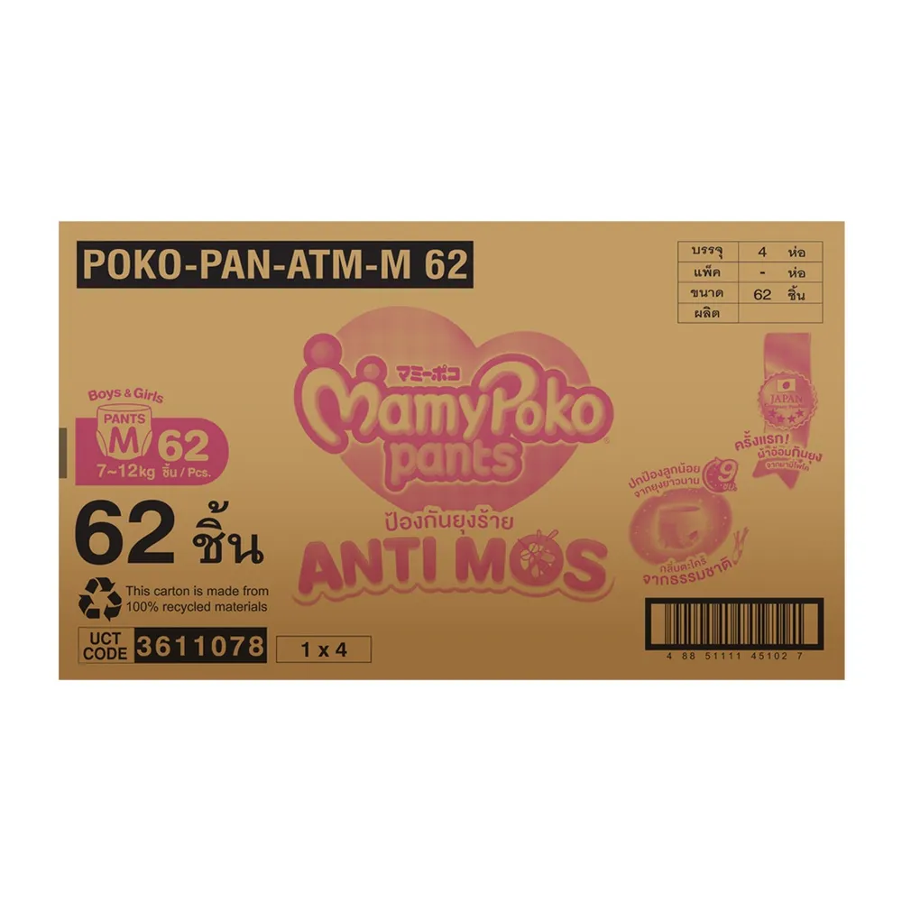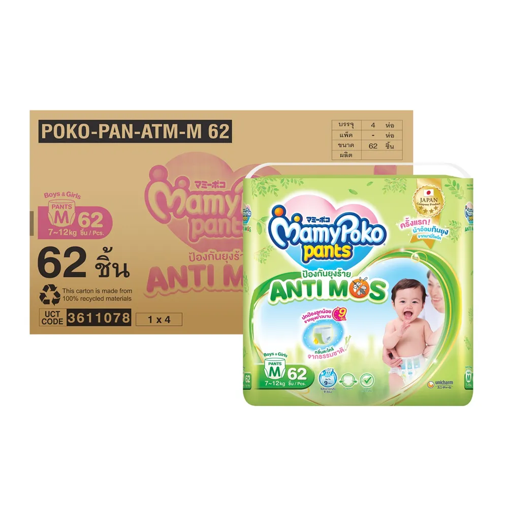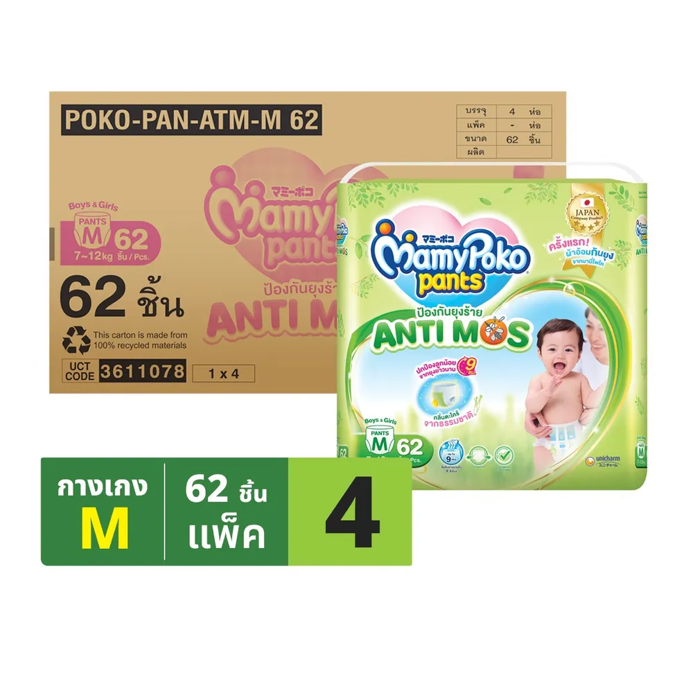 มามี่โพโค แพ้นท์ แอนติ-มอส กางเกงผ้าอ้อม ขนาด M 62 ชิ้น แพ็ค 4