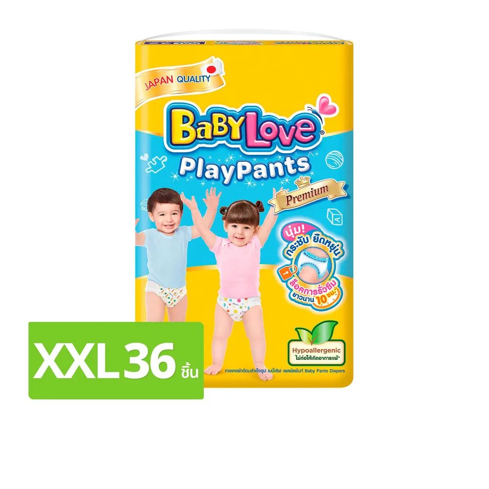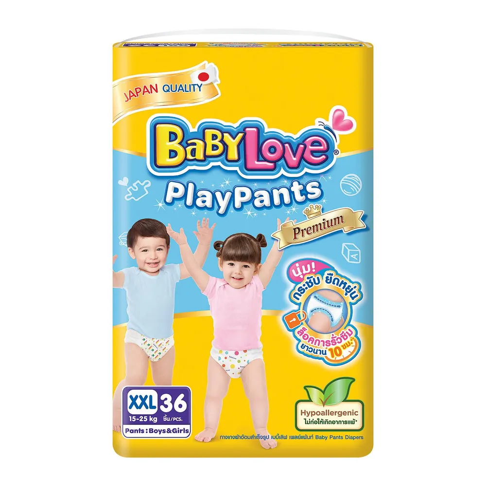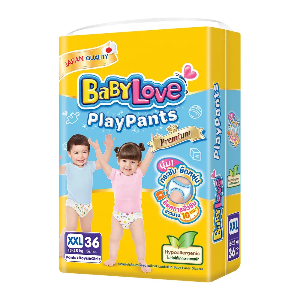 เบบี้เลิฟ เพลย์แพ้นท์ พรีเมี่ยม กางเกงผ้าอ้อม จัมโบ้แพ็ค ขนาด XXL 36 ชิ้น