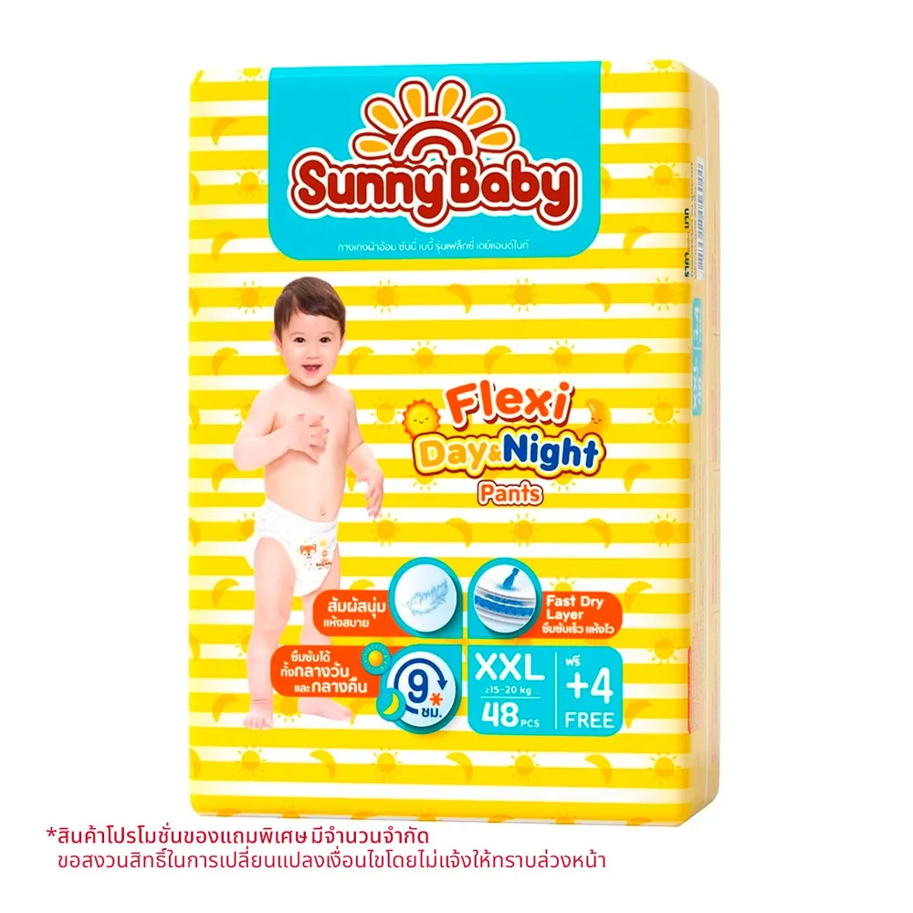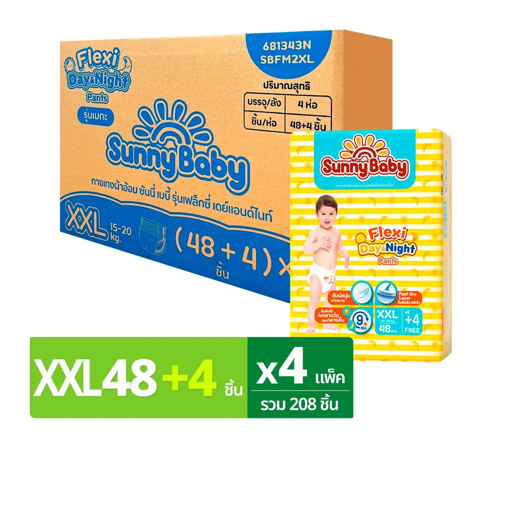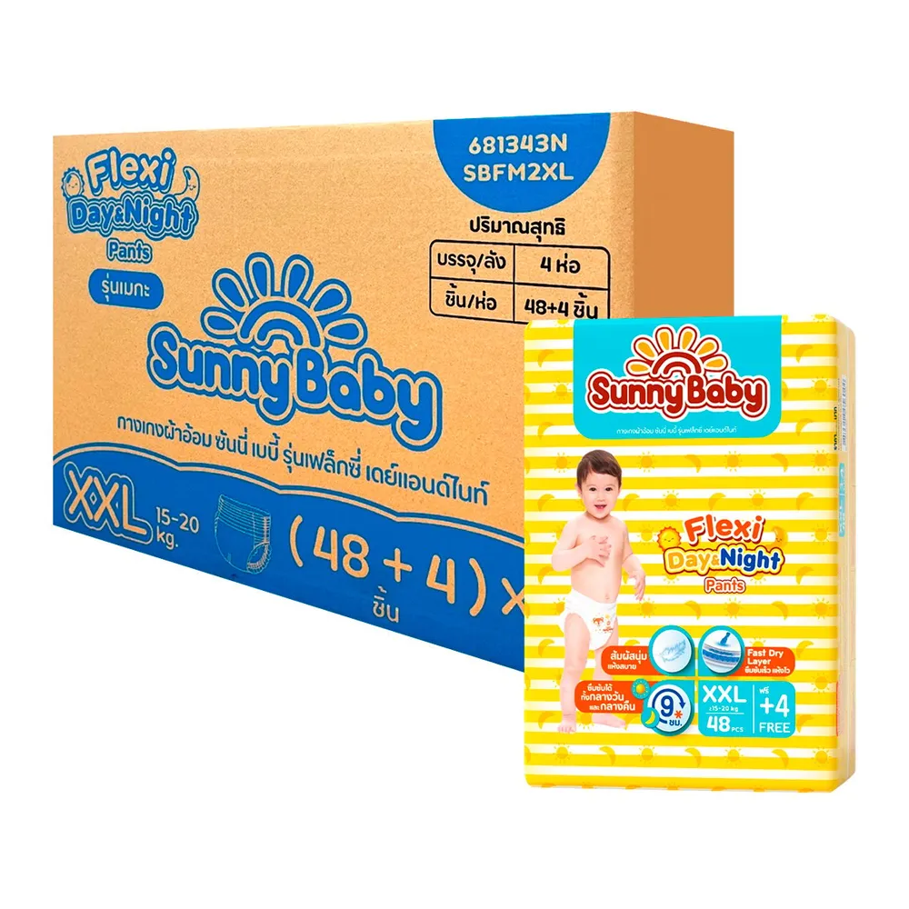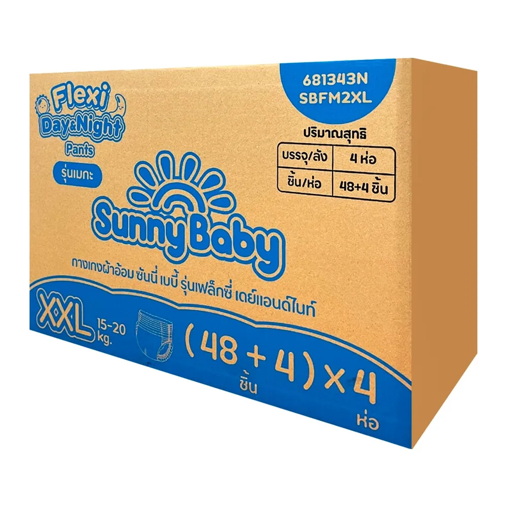 ซันนี่ เบบี้ เฟล็กซี่ เดย์แอนด์ไนท์ แพ้นท์ กางเกงผ้าอ้อม ขนาด XXL 48+4 ชิ้น x 4 ห่อ