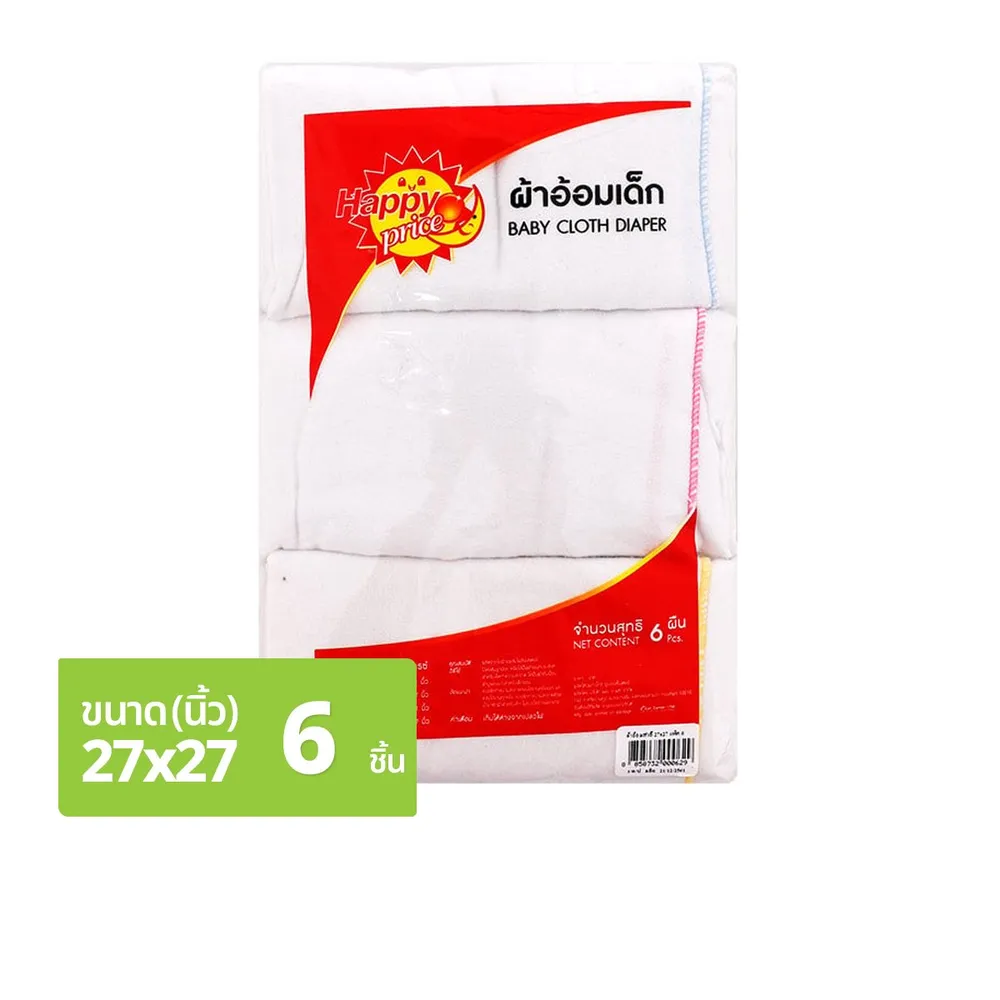แฮปปี้ ไพรซ์ ผ้าอ้อมสำลี 27 x 27 นิ้ว แพ็ค 6 ผืน