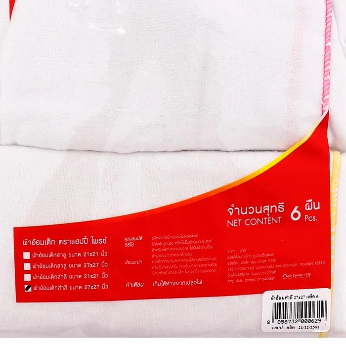 - แฮปปี้ ไพรซ์ ผ้าอ้อมสำลี 27 x 27 นิ้ว แพ็ค 6 ผืน<br />