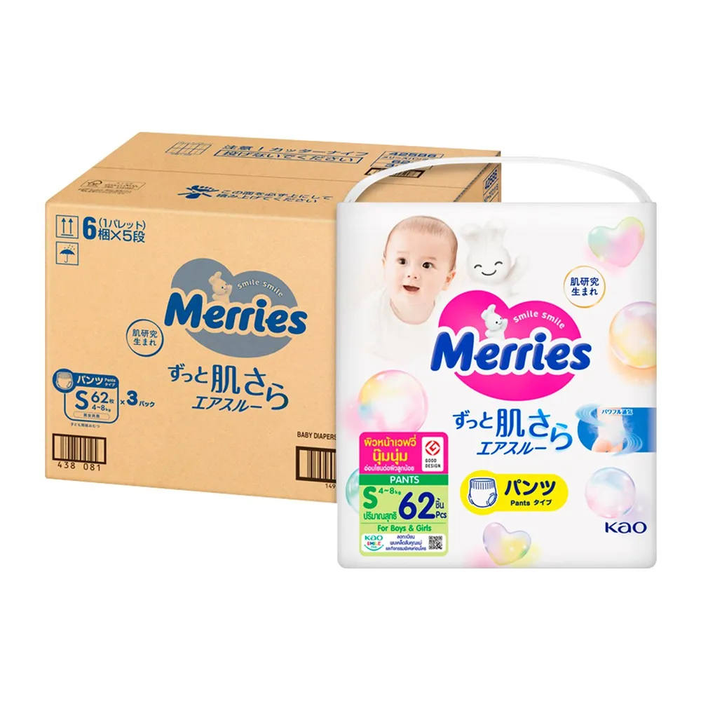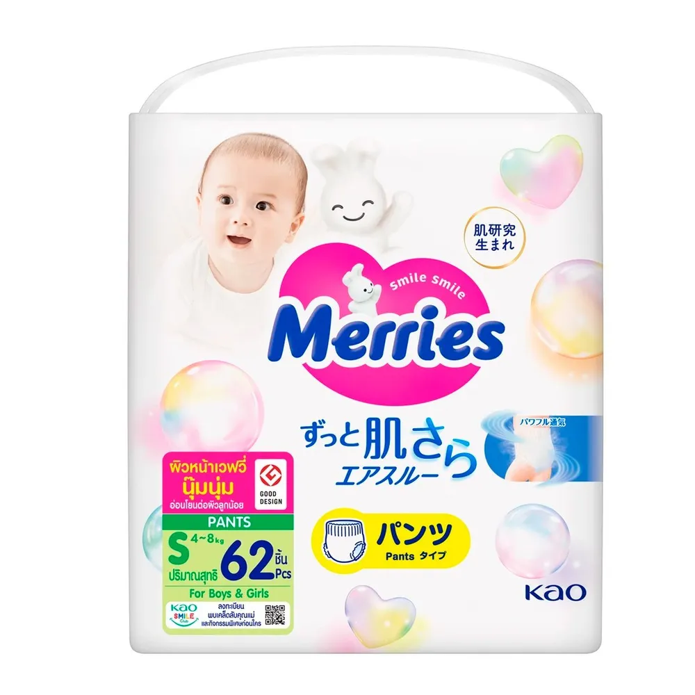 เมอร์รี่ส์ ผ้าอ้อมเด็กชนิดกางเกง ไซส์ S 62 ชิ้น แพ็ค 3