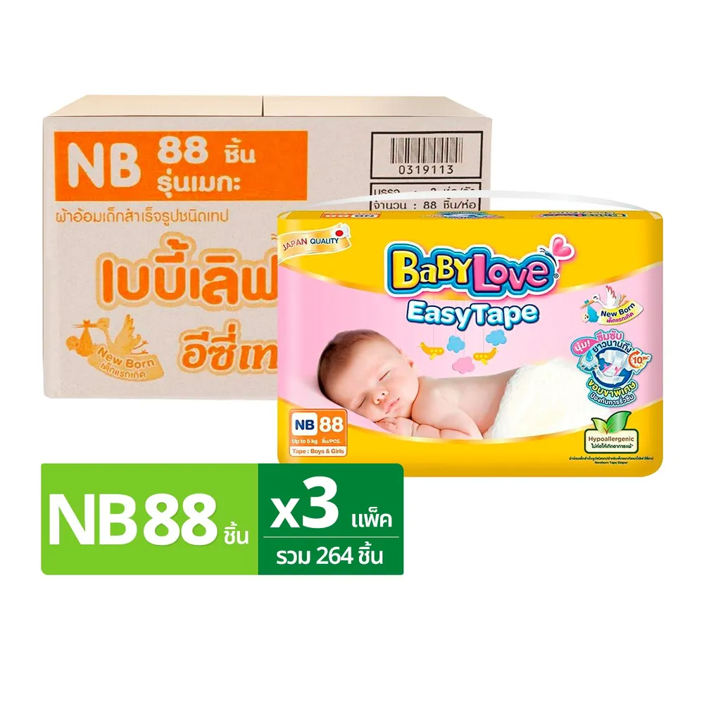 เบบี้เลิฟ อีซี่ เทป ผ้าอ้อมเด็ก เมก้าแพ็ค ขนาด NB 88 ชิ้น X 3 แพ็ค
