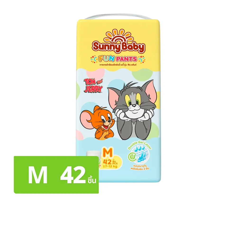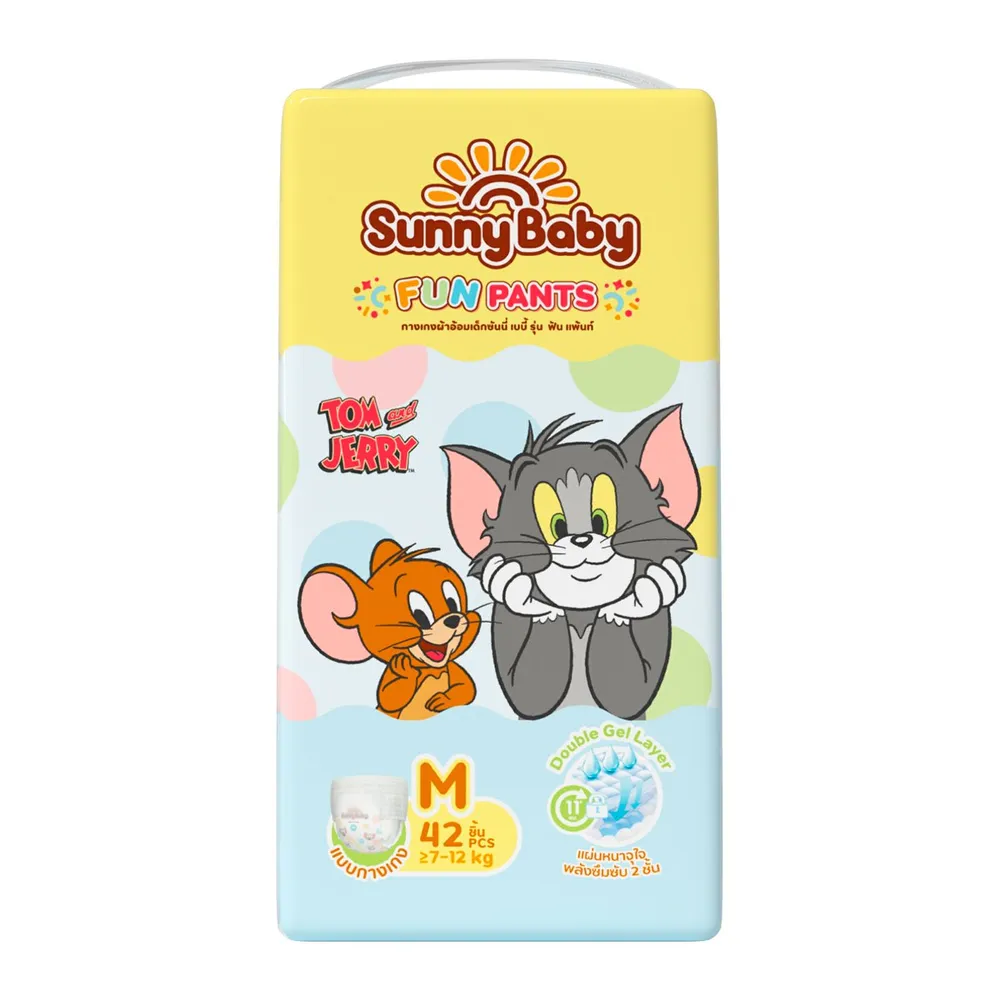 ซันนี่ เบบี้ x ทอม แอนด์ เจอร์รี่ ผ้าอ้อมเด็กแบบกางเกง รุ่น ฟัน แพ้นท์ จุดเด่นพลังซึมซับ 2 ชั้น แผ่นหนาจุใจ<br />